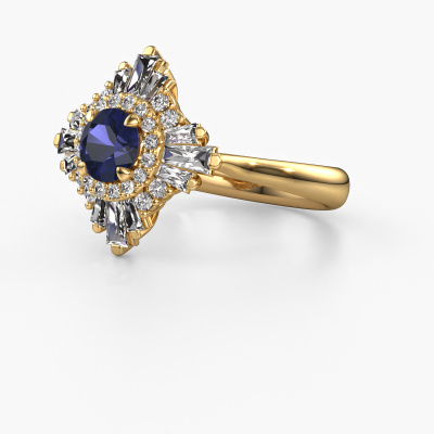 Dieser Verlobungsring aus 14 Karat Gold heißt Thalia und hat einen 5.4 mm Saphir. Ein außergewöhnlicher, Gold Vintage Ring. Einer, der die Liebe Ihres Lebens mit Sicherheit wie ein Saphir erstrahlen lässt! Das hoffen wir zu erreichen. Dieser Vintage Verlobungsring ist mit exquisiten Saphir besetzt. Welchen Edelstein Sie aus unserer Auswahl haben möchten, liegt ganz bei Ihnen. Der Edelstein wird mit großer Sorgfalt ausgewählt. Denn wir glauben, dass Ihr besondere Verlobungsring nur mit dem schönsten Edelstein gekrönt sein darf. Sehen Sie das auch so? Unser erfahrener Juwelier entwirft Ihren Ring in unserem eigenen Studio, wo der Saphir mit großer Präzision eingefasst wird. Der Ring wird dann bearbeitet und poliert, bis er perfekt ist. Nichts als das Beste für die Liebe Ihres Lebens! Jedes Schmuckstück wird hergestellt mit Leidenschaft und Liebe, von einem unserer Meister-Goldschmiede.Nach Erhalt Ihrer Bestellung beginnen unsere Goldschmiede mit Leidenschaft den kreativen Prozess und fertigen Ihren Verlobungsring in unserem eigenen Studio. Da wir keine großen Lager haben, werden diese Kosten nicht an Sie weitergegeben. Unsere Preisgestaltung ist der Beweis dafür! Wir bieten Schmuck zum niedrigsten Preis, garantiert.Haben Sie irgendwo einen bestimmten Verlobungsring gefunden, den Sie Ihrem Liebsten schenken möchten? Sie können uns gerne sagen, was Sie wollen und wir werden Ihr Design in einen Einzigartigen Vintage Verlobungsring verwandeln. Sie können die Entwicklungen Ihres Ringdesigns verfolgen, da wir 3D-Zeichnungen verwenden. Das gibt Ihnen eine realistische Vorschau, wie Ihr Design aussehen wird. Sie können auch einen Dummy vorbestellen. Ein Dummy ist ein Kunststoffring, der nach Ihrem Ringdesign gestaltet werden kann. Sie können ihn anprobieren und prüfen, ob seine Breite und Größe für Sie geeignet sind. Wir senden Ihnen gerne ein unverbindliches Angebot zu einem fairen Preis/Leistungsverhältnis. Sie werden in Anbetracht der Qualität des Rings und der Edelsteine überrascht sein.Um es einfacher zu machen, bieten wir eine kostenlose 30-tägige Rücksendung.