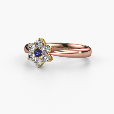Der oben gezeigte Ring, mit dem Namen Chantal 1, nennen wir einen Flower Verlobungsring. Der Cluster Ring trägt einem zentralen Edelstein, umgeben von kleineren Steinen. Diese Version in 14 Karat Roségold hat einen rund Saphir von rund als Mittelstein, umschlossen von kleineren Diamanten. Was diesen traditionell Roségold Flower Ring besonders macht, sind die kleinen Edelsteine rund um den zentralen Saphir, die wie eine schöne Blume geformt sind. Der umgebende Steinkranz umrahmt den Mittelstein so, dass er größer erscheint. Diese Art von Verlobungsring wird auch Blumen- oder Rosettenring genannt. Es ist sehr wichtig, dass die kleineren Saphir identisch positioniert sind, so dass es kein Spiel im Licht, sondern eine perfekte Einheit ergibt. Unsere erfahrenen Juweliere erledigen diese Arbeit. Jeder einzelne Stein wird sorgfältig von Hand gesetzt. Während der Herstellung wird der Lichteinfall ständig überwacht, um sicherzustellen, dass der spezielle Flower-Effekt noch sichtbar ist. Am Ende bekommen Sie den perfekten Verlobungsring mit einem strahlenden Saphir Edelstein Herzstück. Sie können sich die Wirkung eines solchen Ringes vorstellen, wenn Sie ihn an ihrem besonderen Tag für die Liebe Ihres Lebens zum Leuchten bringen. Jedes Schmuckstück ist einzigartig in jeder Hinsicht! Einfach nach Ihren Wünschen anzupassen.Mit unserer modernen Technik können wir Schmuckstücke von höchster Qualität mit größter Sorgfalt für Sie entwerfen und anpassen. Unsere Verlobungsringe sind immer um 30 Prozent günstiger als bei anderen Juwelieren. Wir fertigen Verlobungsringe auf Bestellung, also müssen wir keine großen Lager unterhalten. Wenn Sie ein bestimmtes Budget haben, beraten wir Sie gerne entsprechend.Unsere Designer und Goldschmiede arbeiten jeden Tag zusammen und versuchen, neue Schmuckstücke zu kreieren. Vielleicht haben Sie irgendwo einen schönen, traditionell Verlobungsring gefunden, nach dem Ihr einzigartiger Ring gestaltet werden kann. Setzen Sie sich mit uns in Verbindung. Wir machen Ihnen ein Angebot, basierend auf einem fairen Preis/Leistungsverhältnis, das Sie begeistern wird.Um es einfacher zu machen, bieten wir eine kostenlose 30-tägige Rücksendung.