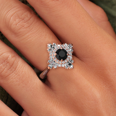 Dieser Verlobungsring aus 14 Karat Roségold heißt Thalia und hat einen 1.563 crt Schwarz Diamant. Ein außergewöhnlicher, Roségold Vintage Ring. Einer, der die Liebe Ihres Lebens mit Sicherheit wie ein Schwarz Diamant erstrahlen lässt! Das hoffen wir zu erreichen. Dieser Vintage Verlobungsring ist mit exquisiten Schwarz Diamant besetzt. Welchen Edelstein Sie aus unserer Auswahl haben möchten, liegt ganz bei Ihnen. Der Edelstein wird mit großer Sorgfalt ausgewählt. Denn wir glauben, dass Ihr besondere Verlobungsring nur mit dem schönsten Edelstein gekrönt sein darf. Sehen Sie das auch so? Unser erfahrener Juwelier entwirft Ihren Ring in unserem eigenen Studio, wo der Schwarz Diamant mit großer Präzision eingefasst wird. Der Ring wird dann bearbeitet und poliert, bis er perfekt ist. Nichts als das Beste für die Liebe Ihres Lebens! Jedes Schmuckstück wird hergestellt mit Leidenschaft und Liebe, von einem unserer Meister-Goldschmiede.Nach Erhalt Ihrer Bestellung beginnen unsere Goldschmiede mit Leidenschaft den kreativen Prozess und fertigen Ihren Verlobungsring in unserem eigenen Studio. Da wir keine großen Lager haben, werden diese Kosten nicht an Sie weitergegeben. Unsere Preisgestaltung ist der Beweis dafür! Wir bieten Schmuck zum niedrigsten Preis, garantiert.Haben Sie irgendwo einen bestimmten Verlobungsring gefunden, den Sie Ihrem Liebsten schenken möchten? Sie können uns gerne sagen, was Sie wollen und wir werden Ihr Design in einen Einzigartigen Vintage Verlobungsring verwandeln. Sie können die Entwicklungen Ihres Ringdesigns verfolgen, da wir 3D-Zeichnungen verwenden. Das gibt Ihnen eine realistische Vorschau, wie Ihr Design aussehen wird. Sie können auch einen Dummy vorbestellen. Ein Dummy ist ein Kunststoffring, der nach Ihrem Ringdesign gestaltet werden kann. Sie können ihn anprobieren und prüfen, ob seine Breite und Größe für Sie geeignet sind. Wir senden Ihnen gerne ein unverbindliches Angebot zu einem fairen Preis/Leistungsverhältnis. Sie werden in Anbetracht der Qualität des Rings und der Edelsteine überrascht sein.Um es einfacher zu machen, bieten wir eine kostenlose 30-tägige Rücksendung.