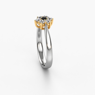 Der oben gezeigte Ring, mit dem Namen Chantal 1, nennen wir einen Flower Verlobungsring. Der Cluster Ring trägt einem zentralen Edelstein, umgeben von kleineren Steinen. Diese Version in 14 Karat Weißgold hat einen rund Schwarz Diamant von rund als Mittelstein, umschlossen von kleineren Diamanten. Was diesen traditionell Weißgold Flower Ring besonders macht, sind die kleinen Edelsteine rund um den zentralen Schwarz Diamant, die wie eine schöne Blume geformt sind. Der umgebende Steinkranz umrahmt den Mittelstein so, dass er größer erscheint. Diese Art von Verlobungsring wird auch Blumen- oder Rosettenring genannt. Es ist sehr wichtig, dass die kleineren Schwarze Diamanten identisch positioniert sind, so dass es kein Spiel im Licht, sondern eine perfekte Einheit ergibt. Unsere erfahrenen Juweliere erledigen diese Arbeit. Jeder einzelne Stein wird sorgfältig von Hand gesetzt. Während der Herstellung wird der Lichteinfall ständig überwacht, um sicherzustellen, dass der spezielle Flower-Effekt noch sichtbar ist. Am Ende bekommen Sie den perfekten Verlobungsring mit einem strahlenden Schwarz Diamant Edelstein Herzstück. Sie können sich die Wirkung eines solchen Ringes vorstellen, wenn Sie ihn an ihrem besonderen Tag für die Liebe Ihres Lebens zum Leuchten bringen. Jedes Schmuckstück ist einzigartig in jeder Hinsicht! Einfach nach Ihren Wünschen anzupassen.Mit unserer modernen Technik können wir Schmuckstücke von höchster Qualität mit größter Sorgfalt für Sie entwerfen und anpassen. Unsere Verlobungsringe sind immer um 30 Prozent günstiger als bei anderen Juwelieren. Wir fertigen Verlobungsringe auf Bestellung, also müssen wir keine großen Lager unterhalten. Wenn Sie ein bestimmtes Budget haben, beraten wir Sie gerne entsprechend.Unsere Designer und Goldschmiede arbeiten jeden Tag zusammen und versuchen, neue Schmuckstücke zu kreieren. Vielleicht haben Sie irgendwo einen schönen, traditionell Verlobungsring gefunden, nach dem Ihr einzigartiger Ring gestaltet werden kann. Setzen Sie sich mit uns in Verbindung. Wir machen Ihnen ein Angebot, basierend auf einem fairen Preis/Leistungsverhältnis, das Sie begeistern wird.Um es einfacher zu machen, bieten wir eine kostenlose 30-tägige Rücksendung.