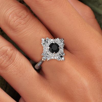 Dieser Verlobungsring aus 14 Karat Weißgold heißt Thalia und hat einen 1.563 crt Schwarz Diamant. Ein außergewöhnlicher, Weißgold Vintage Ring. Einer, der die Liebe Ihres Lebens mit Sicherheit wie ein Schwarz Diamant erstrahlen lässt! Das hoffen wir zu erreichen. Dieser Vintage Verlobungsring ist mit exquisiten Schwarz Diamant besetzt. Welchen Edelstein Sie aus unserer Auswahl haben möchten, liegt ganz bei Ihnen. Der Edelstein wird mit großer Sorgfalt ausgewählt. Denn wir glauben, dass Ihr besondere Verlobungsring nur mit dem schönsten Edelstein gekrönt sein darf. Sehen Sie das auch so? Unser erfahrener Juwelier entwirft Ihren Ring in unserem eigenen Studio, wo der Schwarz Diamant mit großer Präzision eingefasst wird. Der Ring wird dann bearbeitet und poliert, bis er perfekt ist. Nichts als das Beste für die Liebe Ihres Lebens! Jedes Schmuckstück wird hergestellt mit Leidenschaft und Liebe, von einem unserer Meister-Goldschmiede.Nach Erhalt Ihrer Bestellung beginnen unsere Goldschmiede mit Leidenschaft den kreativen Prozess und fertigen Ihren Verlobungsring in unserem eigenen Studio. Da wir keine großen Lager haben, werden diese Kosten nicht an Sie weitergegeben. Unsere Preisgestaltung ist der Beweis dafür! Wir bieten Schmuck zum niedrigsten Preis, garantiert.Haben Sie irgendwo einen bestimmten Verlobungsring gefunden, den Sie Ihrem Liebsten schenken möchten? Sie können uns gerne sagen, was Sie wollen und wir werden Ihr Design in einen Einzigartigen Vintage Verlobungsring verwandeln. Sie können die Entwicklungen Ihres Ringdesigns verfolgen, da wir 3D-Zeichnungen verwenden. Das gibt Ihnen eine realistische Vorschau, wie Ihr Design aussehen wird. Sie können auch einen Dummy vorbestellen. Ein Dummy ist ein Kunststoffring, der nach Ihrem Ringdesign gestaltet werden kann. Sie können ihn anprobieren und prüfen, ob seine Breite und Größe für Sie geeignet sind. Wir senden Ihnen gerne ein unverbindliches Angebot zu einem fairen Preis/Leistungsverhältnis. Sie werden in Anbetracht der Qualität des Rings und der Edelsteine überrascht sein.Um es einfacher zu machen, bieten wir eine kostenlose 30-tägige Rücksendung.