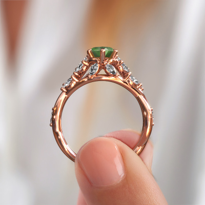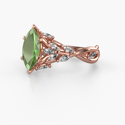 Dieser Ring aus 14 Karat Roségold heißt Samantha MRQ und hat 11x5.5 mm Turmalin grün. Dieser graziöse 14 Karat Roségold Flower Verlobungsring ist ein wahres Kunstwerk! Die Ornamente werden mit viel Geduld und großer Leidenschaft gefertigt. Um diesen Ring mit großer Präzision zu schaffen, erfordert dieses Handwerk ein scharfes Auge und eine geschickte Hand. Eine Herausforderung, die bei unseren erfahrenen Juwelieren ein Feuer entfacht. Die exquisiten grüner Turmalin sind auf eine besondere Art und Weise gefasst, so dass sie noch mehr hervorstechen. Dies verleiht dem Ring eine noch glamourösere Erscheinung. Der Ring an sich ist schon wegen der Edelsteine einzigartig, die wir speziell für diesen Ring auswählen. Obendrein wählen Sie die Edelmetalle aus, mit denen Ihr einzigartiger Ring für die außergewöhnlichste Frau Ihres Lebens gemacht wird! Jedes Schmuckstück ist um Ihrem Finger Glanz zu verleihen. Jeder Ring wird von unseren Goldschmieden liebevoll von Hand gefertigt.Durch die Kombination modernster Technik mit uralter Handwerkskunst können wir alle Verlobungsringe in unserem eigenen Studio anfertigen. Jedes Schmuckstück wird auf Anfrage gefertigt. Das ist vorteilhaft, weil wir Ihnen dadurch einen Preis anbieten können, den Sie nirgendwo anders finden.Unser Team fügt unserer Online-Kollektion täglich neue Designs hinzu. Unsere Designer und Goldschmiede arbeiten zusammen, um das beste Design zu kreieren. Wir bemühen uns, eine vielfältige Kollektion von Schmuckstücken anzubieten. Vielleicht haben Sie ein bestimmtes Design im Sinn. Eines, dass Sie irgendwo gesehen haben. Gerne geben wir Ihnen eine kostenlose Beratung. Wir machen Ihnen ein Angebot, basierend auf einem fairen Preis/Leistungsverhältnis, das Sie verblüffen wird.Um es einfacher zu machen, bieten wir eine kostenlose 30-tägige Rücksendung.