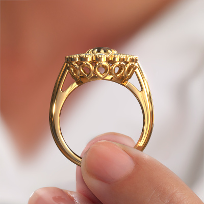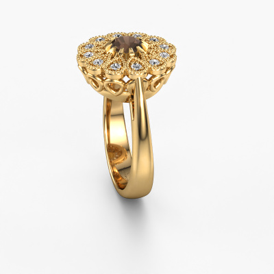 Dieser Perle Ränder Verlobungsring aus 14 Karat Gold heißt Kaat und hat 5 mm Rauchquarz. Ist Ihre Freundin von Vintage begeistert? Dann wird dieser Gold Verlobungsring sicherlich perfekt zu ihrem Stil passen. Ein trendiger Ring mit einem Hauch von klassischem Schmuck. Ein wirklich atemberaubendes, romantisches Design! Vor allem, wenn Sie den Ring nach ihren Wünschen anpassen. Dieser Vintage Flower Verlobungsring ist mit atemberaubenden Rauchquarz besetzt. Wie Sie sehen können, sind Sie der Boss bei der Auswahl des Edelsteins, der am besten zu Ihrer Freundin passt. Jeder Edelstein wird sorgfältig von unseren Händlern ausgewählt, die auf der ganzen Welt verteilt sind. Nichts als die besten Edelsteine für unseren erfahrenen Juwelier! Schließlich ist es seine Krönung! Jedes Schmuckstück ist um Ihrem Finger Glanz zu verleihen. Jeder Ring wird von unseren Goldschmieden liebevoll von Hand gefertigt.Da wir unsere eigenen Ringe entwerfen und liefern, können wir Ihnen einen Verlobungsring zu einem Preis anbieten, den Sie nirgendwo anders finden. Ein Ring wird auf Bestellung angefertigt, wodurch kein überschüssiges Material anfällt. So können wir Ihnen ein gutes Angebot zum besten Preis machen. Wir verstehen, dass es sich riskant anfühlt, Ihren Verlobungsring online zu kaufen. Jedoch helfen wir Ihnen gerne beim Designprozess unter Berücksichtigung Ihres Budgets.Unser Team fügt unserer Online-Kollektion täglich neue Designs hinzu. Unsere Designer und Goldschmiede arbeiten zusammen, um das beste Design zu kreieren. Wir bemühen uns, eine vielfältige Kollektion von Schmuckstücken anzubieten. Vielleicht haben Sie ein bestimmtes Design im Sinn. Eines, dass Sie irgendwo gesehen haben. Gerne geben wir Ihnen eine kostenlose Beratung. Wir machen Ihnen ein Angebot, basierend auf einem fairen Preis/Leistungsverhältnis, das Sie verblüffen wird.Um es einfacher zu machen, bieten wir eine kostenlose 30-tägige Rücksendung.