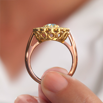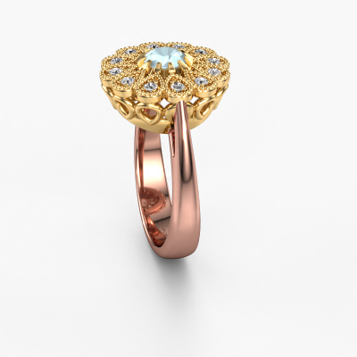 Dieser Perle Ränder Verlobungsring aus 14 Karat Roségold heißt Kaat und hat 5 mm Aquamarin. Ist Ihre Freundin von Vintage begeistert? Dann wird dieser Roségold Verlobungsring sicherlich perfekt zu ihrem Stil passen. Ein trendiger Ring mit einem Hauch von klassischem Schmuck. Ein wirklich atemberaubendes, romantisches Design! Vor allem, wenn Sie den Ring nach ihren Wünschen anpassen. Dieser Vintage Flower Verlobungsring ist mit atemberaubenden Aquamarins besetzt. Wie Sie sehen können, sind Sie der Boss bei der Auswahl des Edelsteins, der am besten zu Ihrer Freundin passt. Jeder Edelstein wird sorgfältig von unseren Händlern ausgewählt, die auf der ganzen Welt verteilt sind. Nichts als die besten Edelsteine für unseren erfahrenen Juwelier! Schließlich ist es seine Krönung! Jedes Schmuckstück ist um Ihrem Finger Glanz zu verleihen. Jeder Ring wird von unseren Goldschmieden liebevoll von Hand gefertigt.Da wir unsere eigenen Ringe entwerfen und liefern, können wir Ihnen einen Verlobungsring zu einem Preis anbieten, den Sie nirgendwo anders finden. Ein Ring wird auf Bestellung angefertigt, wodurch kein überschüssiges Material anfällt. So können wir Ihnen ein gutes Angebot zum besten Preis machen. Wir verstehen, dass es sich riskant anfühlt, Ihren Verlobungsring online zu kaufen. Jedoch helfen wir Ihnen gerne beim Designprozess unter Berücksichtigung Ihres Budgets.Unser Team fügt unserer Online-Kollektion täglich neue Designs hinzu. Unsere Designer und Goldschmiede arbeiten zusammen, um das beste Design zu kreieren. Wir bemühen uns, eine vielfältige Kollektion von Schmuckstücken anzubieten. Vielleicht haben Sie ein bestimmtes Design im Sinn. Eines, dass Sie irgendwo gesehen haben. Gerne geben wir Ihnen eine kostenlose Beratung. Wir machen Ihnen ein Angebot, basierend auf einem fairen Preis/Leistungsverhältnis, das Sie verblüffen wird.Um es einfacher zu machen, bieten wir eine kostenlose 30-tägige Rücksendung.