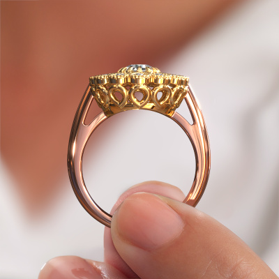 Dieser Perle Ränder Verlobungsring aus 14 Karat Roségold heißt Kaat und hat 0.680 crt Diamant. Ist Ihre Freundin von Vintage begeistert? Dann wird dieser Roségold Verlobungsring sicherlich perfekt zu ihrem Stil passen. Ein trendiger Ring mit einem Hauch von klassischem Schmuck. Ein wirklich atemberaubendes, romantisches Design! Vor allem, wenn Sie den Ring nach ihren Wünschen anpassen. Dieser Vintage Flower Verlobungsring ist mit atemberaubenden Diamanten besetzt. Wie Sie sehen können, sind Sie der Boss bei der Auswahl des Edelsteins, der am besten zu Ihrer Freundin passt. Jeder Edelstein wird sorgfältig von unseren Händlern ausgewählt, die auf der ganzen Welt verteilt sind. Nichts als die besten Edelsteine für unseren erfahrenen Juwelier! Schließlich ist es seine Krönung! Jedes Schmuckstück ist um Ihrem Finger Glanz zu verleihen. Jeder Ring wird von unseren Goldschmieden liebevoll von Hand gefertigt.Da wir unsere eigenen Ringe entwerfen und liefern, können wir Ihnen einen Verlobungsring zu einem Preis anbieten, den Sie nirgendwo anders finden. Ein Ring wird auf Bestellung angefertigt, wodurch kein überschüssiges Material anfällt. So können wir Ihnen ein gutes Angebot zum besten Preis machen. Wir verstehen, dass es sich riskant anfühlt, Ihren Verlobungsring online zu kaufen. Jedoch helfen wir Ihnen gerne beim Designprozess unter Berücksichtigung Ihres Budgets.Unser Team fügt unserer Online-Kollektion täglich neue Designs hinzu. Unsere Designer und Goldschmiede arbeiten zusammen, um das beste Design zu kreieren. Wir bemühen uns, eine vielfältige Kollektion von Schmuckstücken anzubieten. Vielleicht haben Sie ein bestimmtes Design im Sinn. Eines, dass Sie irgendwo gesehen haben. Gerne geben wir Ihnen eine kostenlose Beratung. Wir machen Ihnen ein Angebot, basierend auf einem fairen Preis/Leistungsverhältnis, das Sie verblüffen wird.Um es einfacher zu machen, bieten wir eine kostenlose 30-tägige Rücksendung.