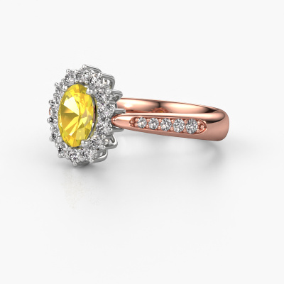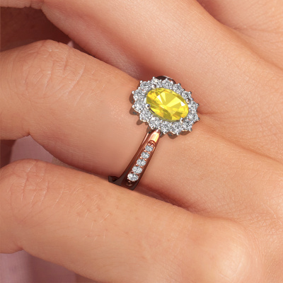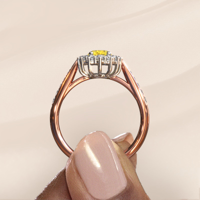Der oben gezeigte Verlobungsring wird Margien 2 genannt. Wir nennen das einen Lady Diana Ring. Mit einem Lady Diana Verlobungsring ist der größere, zentrale Edelstein von kleineren Seitensteinen umgeben. Dieser Ring aus 14 Karat Roségold ist besetzt mit einem 7x5 mm oval Gelb Saphir, umgeben von kleineren Diamanten als Seitensteinen. Sie kennen wahrscheinlich diesen außergewöhnlichen, traditionell Roségold Lady Diana Ring. Es ist der berühmteste Verlobungsring der Welt. Ausschließlich für die bemerkenswerteste Person in Ihrem Leben bestimmt! Ein wirklich atemberaubender Aspekt dieses speziellen Lady Diana Rings ist sein zentraler Gelb Saphir. Die kleineren Seitensteine, die den Gelb Saphir umfassen, betonen den Glanz des mittleren Edelsteins. Dadurch sieht es so aus, als ob sie zu einem großen Edelstein verschmelzen. Aufgrund seines Designs ist das bei Lady Di Ring noch deutlicher. Unsere erfahrenen Goldschmiede möchten einen einzigartigen Ring für Sie kreieren. Wir entwerfen unseren Ring in unserem eigenen Studio. Das macht es Ihnen leicht, den Ring nach Ihren Wünschen zu gestalten. Jedes Schmuckstück ist um Ihrem Finger Glanz zu verleihen. Jeder Ring wird von unseren Goldschmieden liebevoll von Hand gefertigt.Haben Sie ein bestimmtes Budget? Sie können uns gerne kontaktieren, damit wir Ihre Optionen besprechen können. Wir bieten unsere Verlobungsringe zum garantiert besten Preis, denn wir fertigen sie auf Bestellung. Solche Preise finden Sie nirgendwo anders!Unser Team fügt unserer Online-Kollektion täglich neue Designs hinzu. Unsere Designer und Goldschmiede arbeiten zusammen, um das beste Design zu kreieren. Wir bemühen uns, eine vielfältige Kollektion von Schmuckstücken anzubieten. Vielleicht haben Sie ein bestimmtes Design im Sinn. Eines, dass Sie irgendwo gesehen haben. Gerne geben wir Ihnen eine kostenlose Beratung. Wir machen Ihnen ein Angebot, basierend auf einem fairen Preis/Leistungsverhältnis, das Sie verblüffen wird.Um es einfacher zu machen, bieten wir eine kostenlose 30-tägige Rücksendung.