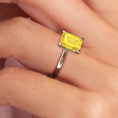 Der oben gezeigte Verlobungsring wird Crystal EME 1 genannt. Wir nennen das einen Solitär-Ring, denn er hat einen einzelnen Edelstein. Es ist ein Platin ring, mit 8x6 mm smaragd schliff Gelb Saphir. Das Besondere an unserem Konfigurator ist dass Sie selbst einem Schmuckstück zusammenstellen können zu einem eigenen persönlichen Schmuckstück. Dieser Solitäre Verlobungsring ist gefertigt in der Edelmetall Kombination Platin mit Platin, aber Sie können also auch wählen aus anderen Farben. Jedes Schmuckstück wird hergestellt mit Leidenschaft und Liebe, von einem unserer Meister-Goldschmiede. Der Solitär-Verlobungsring ist eine Sonderform des Verlobungsring. Seine offenen Krappen ermöglichen, dass Licht aus mehr Winkeln auf den Edelstein trifft. Dieser klassische Verlobungsring ist durch die hohe Positionierung des Edelsteins ein atemberaubender Blickfang. Wir schmücken diesen Solitär-Ring sorgfältig von Hand, damit Sie Ihren Anfrage mit einem einzigartigen Ring würdigen können. Die Liebe Ihres Lebens verdient nur das Beste. Nach Erhalt Ihrer Bestellung beginnen unsere Goldschmiede mit Leidenschaft den kreativen Prozess und fertigen Ihren Verlobungsring in unserem eigenen Studio. Da wir keine großen Lager haben, werden diese Kosten nicht an Sie weitergegeben. Unsere Preisgestaltung ist der Beweis dafür! Wir bieten Schmuck zum niedrigsten Preis, garantiert.Unsere Designer und Goldschmiede arbeiten jeden Tag zusammen und versuchen, neue Schmuckstücke zu kreieren. Vielleicht haben Sie irgendwo einen schönen, klassische Verlobungsring gefunden, nach dem Ihr einzigartiger Ring gestaltet werden kann. Setzen Sie sich mit uns in Verbindung. Wir machen Ihnen ein Angebot, basierend auf einem fairen Preis/Leistungsverhältnis, das Sie begeistern wird.Um es einfacher zu machen, bieten wir eine kostenlose 30-tägige Rücksendung.