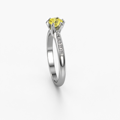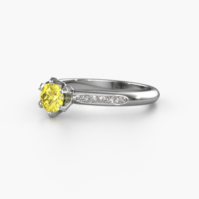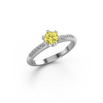Der oben gezeigte Ring wird Tiffy 2 genannt. Es ist ein Pavé Solitär Ring, da er einen zentralen Edelstein und ein Band mit Pavé-Fassung hat. Dieser Platin ring ist mit einem 4.7 mm rund gelber Labor Diamant-Mittelstein besetzt und das Band hat eine Pavé-Fassung mit Diamanten. Jedes Schmuckstück ist um Ihrem Finger Glanz zu verleihen. Jeder Ring wird von unseren Goldschmieden liebevoll von Hand gefertigt.Dieser traditionell Platin Pavé Solitär Verlobungsring mit Pavé-Fassung hat einen exquisiten, rund gelber Labor Diamant als Mittelstein. Um den zentralen Stein noch mehr zu betonen, hat das Band eine Pavé-Fassung mit weiteren Diamanten. Durch die offenen Krappen kann das Licht aus mehreren Winkeln auf den gelber Labor Diamant treffen und der gelber Labor Diamant-Ring funkelt noch mehr. Das obere Foto zeigt die leidenschaftlich handgefertigten Details des Rings. Die hohe Positionierung der Mittelstein ist ein echter Blickfang. Der perfekte Verlobungsring für das Kronjuwel Ihres Lebens!