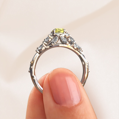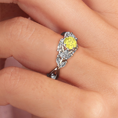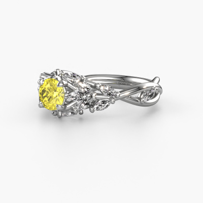 Der oben gezeigte Ring wird Samantha RND genannt. Es ist ein Pavé Solitär Ring, da er einen zentralen Edelstein und ein Band mit Pavé-Fassung hat. Dieser 14 Karat Weißgold ring ist mit einem 5 mm rund gelber Labor Diamant-Mittelstein besetzt und das Band hat eine Pavé-Fassung mit Diamanten. Jedes Schmuckstück wird hergestellt mit Leidenschaft und Liebe, von einem unserer Meister-Goldschmiede.Dieser moderne Weißgold Pavé Solitär Verlobungsring mit Pavé-Fassung hat einen exquisiten, rund gelber Labor Diamant als Mittelstein. Um den zentralen Stein noch mehr zu betonen, hat das Band eine Pavé-Fassung mit weiteren Diamanten. Durch die offenen Krappen kann das Licht aus mehreren Winkeln auf den gelber Labor Diamant treffen und der gelber Labor Diamant-Ring funkelt noch mehr. Das obere Foto zeigt die leidenschaftlich handgefertigten Details des Rings. Die hohe Positionierung der Mittelstein ist ein echter Blickfang. Der perfekte Verlobungsring für das Kronjuwel Ihres Lebens!Durch die Kombination modernster Technik mit uralter Handwerkskunst können wir alle Verlobungsringe in unserem eigenen Studio anfertigen. Jedes Schmuckstück wird auf Anfrage gefertigt. Das ist vorteilhaft, weil wir Ihnen dadurch einen Preis anbieten können, den Sie nirgendwo anders finden.Unsere Designer und Goldschmiede arbeiten jeden Tag zusammen und versuchen, neue Schmuckstücke zu kreieren. Vielleicht haben Sie irgendwo einen schönen, moderne Verlobungsring gefunden, nach dem Ihr einzigartiger Ring gestaltet werden kann. Setzen Sie sich mit uns in Verbindung. Wir machen Ihnen ein Angebot, basierend auf einem fairen Preis/Leistungsverhältnis, das Sie begeistern wird.Um es einfacher zu machen, bieten wir eine kostenlose 30-tägige Rücksendung.