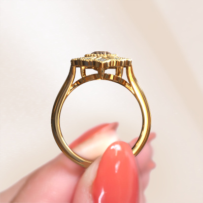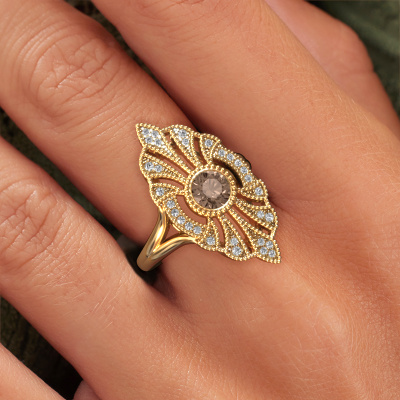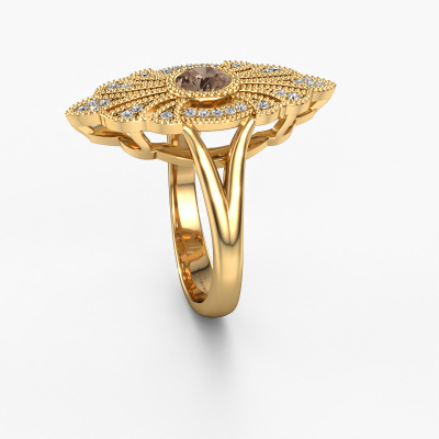 Dieser Verlobungsring aus 14 Karat Gold heißt Hanna. Dieser filigrane Gold Verlobungsring mit 0.667 crt Braun Diamant ist ein wahres Kunstwerk! Ein wunderschön geschmücktes Design aus komplizierten Drähten. Mit Hingabe, Geduld und äußerster Präzision werden unsere erfahrenen Juweliere einen Ring nur für Sie entwerfen. Die Verzierungen mit kleinen Drähten werden von Hand in Perfektion gefertigt. Das ist ein langwieriger Prozess, der Schweißen, Werkzeug und Polieren umfasst, bis der erfahrene Juwelier mit dem Ergebnis zufrieden ist: Ein perfekter, auffälliger Ring, der ihn mit Freude zum Strahlen bringt. Deshalb ist der Vintage, filigrane Verlobungsring ein außergewöhnliches Geschenk, um die Liebe Ihres Lebens zu verwöhnen. Ein handgemachter, einzigartiger und personalisierter Ring, den man jemandem in diesem besonderen Moment geben kann, wenn man die eine Frage stellt. Ist das nicht wunderbar? Jedes Schmuckstück ist um Ihrem Finger Glanz zu verleihen. Jeder Ring wird von unseren Goldschmieden liebevoll von Hand gefertigt.Nach Erhalt Ihrer Bestellung beginnen unsere Goldschmiede mit Leidenschaft den kreativen Prozess und fertigen Ihren Verlobungsring in unserem eigenen Studio. Da wir keine großen Lager haben, werden diese Kosten nicht an Sie weitergegeben. Unsere Preisgestaltung ist der Beweis dafür! Wir bieten Schmuck zum niedrigsten Preis, garantiert.Unser Team fügt unserer Online-Kollektion täglich neue Designs hinzu. Unsere Designer und Goldschmiede arbeiten zusammen, um das beste Design zu kreieren. Wir bemühen uns, eine vielfältige Kollektion von Schmuckstücken anzubieten. Vielleicht haben Sie ein bestimmtes Design im Sinn. Eines, dass Sie irgendwo gesehen haben. Gerne geben wir Ihnen eine kostenlose Beratung. Wir machen Ihnen ein Angebot, basierend auf einem fairen Preis/Leistungsverhältnis, das Sie verblüffen wird.Um es einfacher zu machen, bieten wir eine kostenlose 30-tägige Rücksendung.