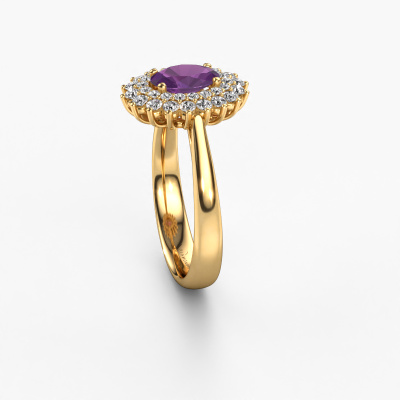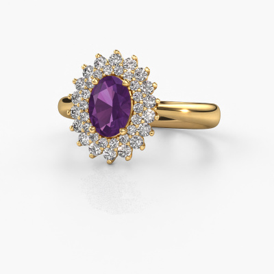 Der oben gezeigte Ring wird Alina 1 genannt. Ein Cluster Ring mit einem zentralen Edelstein, umgeben von kleineren Steinen, wir nennen das einen Cluster Ring. Diese Version in 14 Karat Gold hat einen 7x5 mm oval Amethyst als Mittelstein, umschlossen von kleineren Diamanten. Der klassische, Gold Cluster Verlobungsring zeichnet sich durch seine Form aus. Zusammen bilden die kleineren und größeren Amethyst eine Blume und scheinen zu einem großen, funkelnden Edelstein zu verschmelzen. Dieser klassische Verlobungsring wird auch als Blumen- oder Rosettenring bezeichnet. Unsere erfahrenen Juweliere stellen sicher, dass die kleineren Diamanten identisch gesetzt sind, so dass es an dem Amethyst keine Lichtstörungen gibt, sondern sie stattdessen eine Einheit bilden. Mit perfekter Präzision und geschickter Hand wird jeder Amethyst in den Ring gesetzt. Während der Herstellung wird alles ständig überwacht, um sicherzustellen, dass das Licht einwandfrei reflektiert wird. Das alles führt zu einem einzigartigen Verlobungsring mit einem strahlenden Amethysten in seiner Mitte. Ein schönes, bedeutungsvolles Geschenk, um es der Liebe Ihres Lebens zu schenken. Haben Sie ein bestimmtes Budget? Sie können uns gerne kontaktieren, damit wir Ihre Optionen besprechen können. Wir bieten unsere Verlobungsringe zum garantiert besten Preis, denn wir fertigen sie auf Bestellung. Solche Preise finden Sie nirgendwo anders!Unsere Designer und Goldschmiede arbeiten jeden Tag zusammen und versuchen, neue Schmuckstücke zu kreieren. Vielleicht haben Sie irgendwo einen schönen, klassische Verlobungsring gefunden, nach dem Ihr einzigartiger Ring gestaltet werden kann. Setzen Sie sich mit uns in Verbindung. Wir machen Ihnen ein Angebot, basierend auf einem fairen Preis/Leistungsverhältnis, das Sie begeistern wird.Um es einfacher zu machen, bieten wir eine kostenlose 30-tägige Rücksendung.