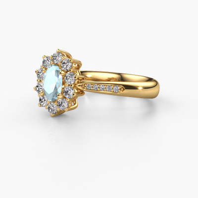 Der oben gezeigte Ring wird Leesa 2 genannt. Ein Cluster Ring mit einem zentralen Edelstein, umgeben von kleineren Steinen, wir nennen das einen Cluster Ring. Diese Version in 14 Karat Gold hat einen 6x4 mm oval Aquamarin als Mittelstein, umschlossen von kleineren Diamanten. Der klassische, Gold Cluster Verlobungsring zeichnet sich durch seine Form aus. Zusammen bilden die kleineren und größeren Aquamarin eine Blume und scheinen zu einem großen, funkelnden Edelstein zu verschmelzen. Dieser klassische Verlobungsring wird auch als Blumen- oder Rosettenring bezeichnet. Unsere erfahrenen Juweliere stellen sicher, dass die kleineren Diamanten identisch gesetzt sind, so dass es an dem Aquamarin keine Lichtstörungen gibt, sondern sie stattdessen eine Einheit bilden. Mit perfekter Präzision und geschickter Hand wird jeder Aquamarin in den Ring gesetzt. Während der Herstellung wird alles ständig überwacht, um sicherzustellen, dass das Licht einwandfrei reflektiert wird. Das alles führt zu einem einzigartigen Verlobungsring mit einem strahlenden Aquamarins in seiner Mitte. Ein schönes, bedeutungsvolles Geschenk, um es der Liebe Ihres Lebens zu schenken. Haben Sie ein bestimmtes Budget? Sie können uns gerne kontaktieren, damit wir Ihre Optionen besprechen können. Wir bieten unsere Verlobungsringe zum garantiert besten Preis, denn wir fertigen sie auf Bestellung. Solche Preise finden Sie nirgendwo anders!Unsere Designer und Goldschmiede arbeiten jeden Tag zusammen und versuchen, neue Schmuckstücke zu kreieren. Vielleicht haben Sie irgendwo einen schönen, klassische Verlobungsring gefunden, nach dem Ihr einzigartiger Ring gestaltet werden kann. Setzen Sie sich mit uns in Verbindung. Wir machen Ihnen ein Angebot, basierend auf einem fairen Preis/Leistungsverhältnis, das Sie begeistern wird.Um es einfacher zu machen, bieten wir eine kostenlose 30-tägige Rücksendung.