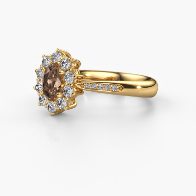 Der oben gezeigte Ring wird Leesa 2 genannt. Ein Cluster Ring mit einem zentralen Edelstein, umgeben von kleineren Steinen, wir nennen das einen Cluster Ring. Diese Version in 14 Karat Gold hat einen 0.40 crt oval Braun Diamant als Mittelstein, umschlossen von kleineren Diamanten. Der klassische, Gold Cluster Verlobungsring zeichnet sich durch seine Form aus. Zusammen bilden die kleineren und größeren Braun Diamant eine Blume und scheinen zu einem großen, funkelnden Edelstein zu verschmelzen. Dieser klassische Verlobungsring wird auch als Blumen- oder Rosettenring bezeichnet. Unsere erfahrenen Juweliere stellen sicher, dass die kleineren Diamanten identisch gesetzt sind, so dass es an dem Braun Diamant keine Lichtstörungen gibt, sondern sie stattdessen eine Einheit bilden. Mit perfekter Präzision und geschickter Hand wird jeder Braun Diamant in den Ring gesetzt. Während der Herstellung wird alles ständig überwacht, um sicherzustellen, dass das Licht einwandfrei reflektiert wird. Das alles führt zu einem einzigartigen Verlobungsring mit einem strahlenden Braune Diamanten in seiner Mitte. Ein schönes, bedeutungsvolles Geschenk, um es der Liebe Ihres Lebens zu schenken. Haben Sie ein bestimmtes Budget? Sie können uns gerne kontaktieren, damit wir Ihre Optionen besprechen können. Wir bieten unsere Verlobungsringe zum garantiert besten Preis, denn wir fertigen sie auf Bestellung. Solche Preise finden Sie nirgendwo anders!Unsere Designer und Goldschmiede arbeiten jeden Tag zusammen und versuchen, neue Schmuckstücke zu kreieren. Vielleicht haben Sie irgendwo einen schönen, klassische Verlobungsring gefunden, nach dem Ihr einzigartiger Ring gestaltet werden kann. Setzen Sie sich mit uns in Verbindung. Wir machen Ihnen ein Angebot, basierend auf einem fairen Preis/Leistungsverhältnis, das Sie begeistern wird.Um es einfacher zu machen, bieten wir eine kostenlose 30-tägige Rücksendung.