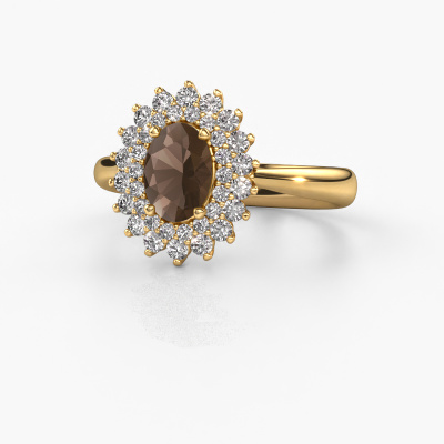 Der oben gezeigte Ring wird Alina 1 genannt. Ein Cluster Ring mit einem zentralen Edelstein, umgeben von kleineren Steinen, wir nennen das einen Cluster Ring. Diese Version in 14 Karat Gold hat einen 7x5 mm oval Rauchquarz als Mittelstein, umschlossen von kleineren Diamanten. Der klassische, Gold Cluster Verlobungsring zeichnet sich durch seine Form aus. Zusammen bilden die kleineren und größeren Rauchquarz eine Blume und scheinen zu einem großen, funkelnden Edelstein zu verschmelzen. Dieser klassische Verlobungsring wird auch als Blumen- oder Rosettenring bezeichnet. Unsere erfahrenen Juweliere stellen sicher, dass die kleineren Diamanten identisch gesetzt sind, so dass es an dem Rauchquarz keine Lichtstörungen gibt, sondern sie stattdessen eine Einheit bilden. Mit perfekter Präzision und geschickter Hand wird jeder Rauchquarz in den Ring gesetzt. Während der Herstellung wird alles ständig überwacht, um sicherzustellen, dass das Licht einwandfrei reflektiert wird. Das alles führt zu einem einzigartigen Verlobungsring mit einem strahlenden Rauchquarz in seiner Mitte. Ein schönes, bedeutungsvolles Geschenk, um es der Liebe Ihres Lebens zu schenken. Haben Sie ein bestimmtes Budget? Sie können uns gerne kontaktieren, damit wir Ihre Optionen besprechen können. Wir bieten unsere Verlobungsringe zum garantiert besten Preis, denn wir fertigen sie auf Bestellung. Solche Preise finden Sie nirgendwo anders!Unsere Designer und Goldschmiede arbeiten jeden Tag zusammen und versuchen, neue Schmuckstücke zu kreieren. Vielleicht haben Sie irgendwo einen schönen, klassische Verlobungsring gefunden, nach dem Ihr einzigartiger Ring gestaltet werden kann. Setzen Sie sich mit uns in Verbindung. Wir machen Ihnen ein Angebot, basierend auf einem fairen Preis/Leistungsverhältnis, das Sie begeistern wird.Um es einfacher zu machen, bieten wir eine kostenlose 30-tägige Rücksendung.