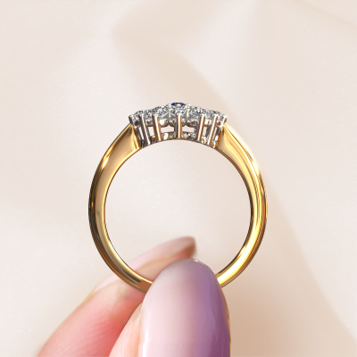 Der oben gezeigte Ring wird Vickey genannt. Ein Flower Ring mit einem zentralen Edelstein, umgeben von kleineren Steinen, wir nennen das einen Cluster Ring. Diese Version in 14 Karat Gold hat einen 2 mm rund Saphir als Mittelstein, umschlossen von kleineren Diamanten. Der klassische, Gold Flower Verlobungsring zeichnet sich durch seine Form aus. Zusammen bilden die kleineren und größeren Saphir eine Blume und scheinen zu einem großen, funkelnden Edelstein zu verschmelzen. Dieser klassische Verlobungsring wird auch als Blumen- oder Rosettenring bezeichnet. Unsere erfahrenen Juweliere stellen sicher, dass die kleineren Diamanten identisch gesetzt sind, so dass es an dem Saphir keine Lichtstörungen gibt, sondern sie stattdessen eine Einheit bilden. Mit perfekter Präzision und geschickter Hand wird jeder Saphir in den Ring gesetzt. Während der Herstellung wird alles ständig überwacht, um sicherzustellen, dass das Licht einwandfrei reflektiert wird. Das alles führt zu einem einzigartigen Verlobungsring mit einem strahlenden Saphir in seiner Mitte. Ein schönes, bedeutungsvolles Geschenk, um es der Liebe Ihres Lebens zu schenken. Da wir unsere eigenen Ringe entwerfen und liefern, können wir Ihnen einen Verlobungsring zu einem Preis anbieten, den Sie nirgendwo anders finden. Ein Ring wird auf Bestellung angefertigt, wodurch kein überschüssiges Material anfällt. So können wir Ihnen ein gutes Angebot zum besten Preis machen. Wir verstehen, dass es sich riskant anfühlt, Ihren Verlobungsring online zu kaufen. Jedoch helfen wir Ihnen gerne beim Designprozess unter Berücksichtigung Ihres Budgets.Unsere Designer und Goldschmiede arbeiten jeden Tag zusammen und versuchen, neue Schmuckstücke zu kreieren. Vielleicht haben Sie irgendwo einen schönen, klassische Verlobungsring gefunden, nach dem Ihr einzigartiger Ring gestaltet werden kann. Setzen Sie sich mit uns in Verbindung. Wir machen Ihnen ein Angebot, basierend auf einem fairen Preis/Leistungsverhältnis, das Sie begeistern wird.Um es einfacher zu machen, bieten wir eine kostenlose 30-tägige Rücksendung.