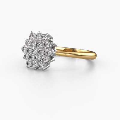 Der oben gezeigte Ring wird Vickey genannt. Ein Flower Ring mit einem zentralen Edelstein, umgeben von kleineren Steinen, wir nennen das einen Cluster Ring. Diese Version in 14 Karat Gold hat einen 2 mm rund Zirkonia als Mittelstein, umschlossen von kleineren Diamanten. Der klassische, Gold Flower Verlobungsring zeichnet sich durch seine Form aus. Zusammen bilden die kleineren und größeren Zirkonia eine Blume und scheinen zu einem großen, funkelnden Edelstein zu verschmelzen. Dieser klassische Verlobungsring wird auch als Blumen- oder Rosettenring bezeichnet. Unsere erfahrenen Juweliere stellen sicher, dass die kleineren Diamanten identisch gesetzt sind, so dass es an dem Zirkonia keine Lichtstörungen gibt, sondern sie stattdessen eine Einheit bilden. Mit perfekter Präzision und geschickter Hand wird jeder Zirkonia in den Ring gesetzt. Während der Herstellung wird alles ständig überwacht, um sicherzustellen, dass das Licht einwandfrei reflektiert wird. Das alles führt zu einem einzigartigen Verlobungsring mit einem strahlenden Zirkonia in seiner Mitte. Ein schönes, bedeutungsvolles Geschenk, um es der Liebe Ihres Lebens zu schenken. Da wir unsere eigenen Ringe entwerfen und liefern, können wir Ihnen einen Verlobungsring zu einem Preis anbieten, den Sie nirgendwo anders finden. Ein Ring wird auf Bestellung angefertigt, wodurch kein überschüssiges Material anfällt. So können wir Ihnen ein gutes Angebot zum besten Preis machen. Wir verstehen, dass es sich riskant anfühlt, Ihren Verlobungsring online zu kaufen. Jedoch helfen wir Ihnen gerne beim Designprozess unter Berücksichtigung Ihres Budgets.Unsere Designer und Goldschmiede arbeiten jeden Tag zusammen und versuchen, neue Schmuckstücke zu kreieren. Vielleicht haben Sie irgendwo einen schönen, klassische Verlobungsring gefunden, nach dem Ihr einzigartiger Ring gestaltet werden kann. Setzen Sie sich mit uns in Verbindung. Wir machen Ihnen ein Angebot, basierend auf einem fairen Preis/Leistungsverhältnis, das Sie begeistern wird.Um es einfacher zu machen, bieten wir eine kostenlose 30-tägige Rücksendung.
