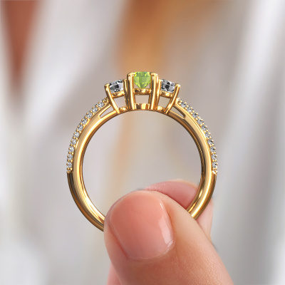 Dieser Verlobungsring aus 14 Karat Gold mit 6.5x4.5 mm Peridot heißt Marielle OVL. Liebt deine Freundin exklusiven Schmuck? Oder möchten Sie ihr zeigen, dass sie den besten Schmuck verdient? Dieser Gold Ring ist pure Handwerkskunst - Liebe und Leidenschaft kombiniert mit den neuesten Techniken, die in perfekter Harmonie zusammentreffen. Es erfordert ein scharfes Auge, Geduld und eine geschickte Hand, um diesen Ring in Perfektion zu formen. Genau der richtige Job für unsere erfahrenen Juweliere! Die Peridot-Fassung verleiht diesem Gold Pavé Ring eine extra glänzende Erscheinung. Passen Sie den Stil des Rings nach Ihren Wünschen und mit einer großen Auswahl an Edelmetallen und Edelsteinen an, die Sie selbst auswählen können. So kreieren Sie einen einzigartigen Ring für die exklusivste Frau Ihres Lebens! Jedes Schmuckstück wird von unseren Meister-Goldschmieden in unserem eigenen Studio für Sie gefertigt.Haben Sie ein bestimmtes Budget? Sie können uns gerne kontaktieren, damit wir Ihre Optionen besprechen können. Wir bieten unsere Verlobungsringe zum garantiert besten Preis, denn wir fertigen sie auf Bestellung. Solche Preise finden Sie nirgendwo anders!Haben Sie irgendwo einen bestimmten Verlobungsring gefunden, den Sie Ihrem Liebsten schenken möchten? Sie können uns gerne sagen, was Sie wollen und wir werden Ihr Design in einen Einzigartigen exklusive Verlobungsring verwandeln. Sie können die Entwicklungen Ihres Ringdesigns verfolgen, da wir 3D-Zeichnungen verwenden. Das gibt Ihnen eine realistische Vorschau, wie Ihr Design aussehen wird. Sie können auch einen Dummy vorbestellen. Ein Dummy ist ein Kunststoffring, der nach Ihrem Ringdesign gestaltet werden kann. Sie können ihn anprobieren und prüfen, ob seine Breite und Größe für Sie geeignet sind. Wir senden Ihnen gerne ein unverbindliches Angebot zu einem fairen Preis/Leistungsverhältnis. Sie werden in Anbetracht der Qualität des Rings und der Edelsteine überrascht sein.Um es einfacher zu machen, bieten wir eine kostenlose 30-tägige Rücksendung.