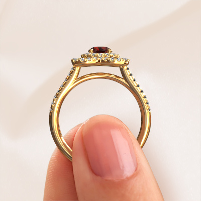 Dieser Verlobungsring aus 14 Karat Gold heißt Cleopatra und hat einen Granat Edelstein. Ein außergewöhnlicher, Gold Vintage Ring. Einer, der die Liebe Ihres Lebens mit Sicherheit wie ein Granat erstrahlen lässt! Das hoffen wir zu erreichen. Dieser Vintage Verlobungsring ist mit exquisiten Granat besetzt. Welchen Edelstein Sie aus unserer Auswahl haben möchten, liegt ganz bei Ihnen. Der Edelstein wird mit großer Sorgfalt ausgewählt. Denn wir glauben, dass Ihr Verlobungsring nur mit dem schönsten Edelstein gekrönt sein darf. Sehen Sie das auch so? Unser erfahrener Juwelier entwirft Ihren Ring in unserem eigenen Studio, wo der Granat mit großer Präzision eingefasst wird. Der Ring wird dann bearbeitet und poliert, bis er perfekt ist. Nichts als das Beste für die Liebe Ihres Lebens! Jedes Schmuckstück wird nur für Sie persönlich hergestellt, mit Liebe zum Detail und Design.Nach Erhalt Ihrer Bestellung beginnen unsere Goldschmiede mit Leidenschaft den kreativen Prozess und fertigen Ihren Verlobungsring in unserem eigenen Studio. Da wir keine großen Lager haben, werden diese Kosten nicht an Sie weitergegeben. Unsere Preisgestaltung ist der Beweis dafür! Wir bieten Schmuck zum niedrigsten Preis, garantiert.Haben Sie irgendwo einen bestimmten Verlobungsring gefunden, den Sie Ihrem Liebsten schenken möchten? Sie können uns gerne sagen, was Sie wollen und wir werden Ihr Design in einen Einzigartigen Vintage Verlobungsring verwandeln. Sie können die Entwicklungen Ihres Ringdesigns verfolgen, da wir 3D-Zeichnungen verwenden. Das gibt Ihnen eine realistische Vorschau, wie Ihr Design aussehen wird. Sie können auch einen Dummy vorbestellen. Ein Dummy ist ein Kunststoffring, der nach Ihrem Ringdesign gestaltet werden kann. Sie können ihn anprobieren und prüfen, ob seine Breite und Größe für Sie geeignet sind. Wir senden Ihnen gerne ein unverbindliches Angebot zu einem fairen Preis/Leistungsverhältnis. Sie werden in Anbetracht der Qualität des Rings und der Edelsteine überrascht sein.Um es einfacher zu machen, bieten wir eine kostenlose 30-tägige Rücksendung.