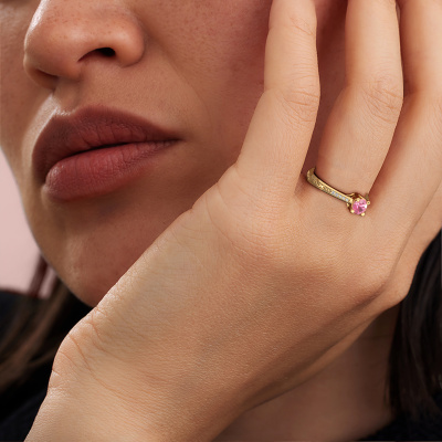 Dieser Verlobungsring aus 14 Karat Gold heißt Mei und hat einen Pink Saphir Edelstein. Ein außergewöhnlicher, Gold Vintage Ring. Einer, der die Liebe Ihres Lebens mit Sicherheit wie ein Pink Saphir erstrahlen lässt! Das hoffen wir zu erreichen. Dieser Keltische Verlobungsring ist mit exquisiten Pink Saphir besetzt. Welchen Edelstein Sie aus unserer Auswahl haben möchten, liegt ganz bei Ihnen. Der Edelstein wird mit großer Sorgfalt ausgewählt. Denn wir glauben, dass Ihr Verlobungsring nur mit dem schönsten Edelstein gekrönt sein darf. Sehen Sie das auch so? Unser erfahrener Juwelier entwirft Ihren Ring in unserem eigenen Studio, wo der Pink Saphir mit großer Präzision eingefasst wird. Der Ring wird dann bearbeitet und poliert, bis er perfekt ist. Nichts als das Beste für die Liebe Ihres Lebens! Jedes Schmuckstück wird nur für Sie persönlich hergestellt, mit Liebe zum Detail und Design.Haben Sie ein bestimmtes Budget? Sie können uns gerne kontaktieren, damit wir Ihre Optionen besprechen können. Wir bieten unsere Verlobungsringe zum garantiert besten Preis, denn wir fertigen sie auf Bestellung. Solche Preise finden Sie nirgendwo anders!Unser Team fügt unserer Online-Kollektion täglich neue Designs hinzu. Unsere Designer und Goldschmiede arbeiten zusammen, um das beste Design zu kreieren. Wir bemühen uns, eine vielfältige Kollektion von Schmuckstücken anzubieten. Vielleicht haben Sie ein bestimmtes Design im Sinn. Eines, dass Sie irgendwo gesehen haben. Gerne geben wir Ihnen eine kostenlose Beratung. Wir machen Ihnen ein Angebot, basierend auf einem fairen Preis/Leistungsverhältnis, das Sie verblüffen wird.Um es einfacher zu machen, bieten wir eine kostenlose 30-tägige Rücksendung.