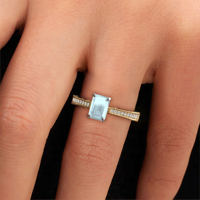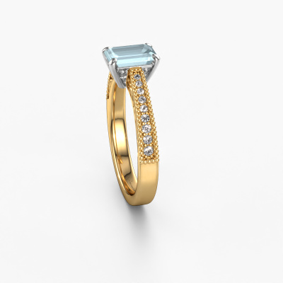 Dieser Verlobungsring aus 14 Karat Gold heißt Shonta EME und hat einen Aquamarin Edelstein. Ein außergewöhnlicher, Gold Vintage Ring. Einer, der die Liebe Ihres Lebens mit Sicherheit wie ein Aquamarin erstrahlen lässt! Das hoffen wir zu erreichen. Dieser Vintage Verlobungsring ist mit exquisiten Aquamarins besetzt. Welchen Edelstein Sie aus unserer Auswahl haben möchten, liegt ganz bei Ihnen. Der Edelstein wird mit großer Sorgfalt ausgewählt. Denn wir glauben, dass Ihr Verlobungsring nur mit dem schönsten Edelstein gekrönt sein darf. Sehen Sie das auch so? Unser erfahrener Juwelier entwirft Ihren Ring in unserem eigenen Studio, wo der Aquamarin mit großer Präzision eingefasst wird. Der Ring wird dann bearbeitet und poliert, bis er perfekt ist. Nichts als das Beste für die Liebe Ihres Lebens! Jedes Schmuckstück wird hergestellt von einem Team leidenschaftlicher Goldschmiede und Schmuckdesigner. Das wird Ihr Kronjuwel unbedingt zu einem Blickfang machen.Haben Sie ein bestimmtes Budget? Sie können uns gerne kontaktieren, damit wir Ihre Optionen besprechen können. Wir bieten unsere Verlobungsringe zum garantiert besten Preis, denn wir fertigen sie auf Bestellung. Solche Preise finden Sie nirgendwo anders!Haben Sie irgendwo einen bestimmten Verlobungsring gefunden, den Sie Ihrem Liebsten schenken möchten? Sie können uns gerne sagen, was Sie wollen und wir werden Ihr Design in einen Einzigartigen Vintage Verlobungsring verwandeln. Sie können die Entwicklungen Ihres Ringdesigns verfolgen, da wir 3D-Zeichnungen verwenden. Das gibt Ihnen eine realistische Vorschau, wie Ihr Design aussehen wird. Sie können auch einen Dummy vorbestellen. Ein Dummy ist ein Kunststoffring, der nach Ihrem Ringdesign gestaltet werden kann. Sie können ihn anprobieren und prüfen, ob seine Breite und Größe für Sie geeignet sind. Wir senden Ihnen gerne ein unverbindliches Angebot zu einem fairen Preis/Leistungsverhältnis. Sie werden in Anbetracht der Qualität des Rings und der Edelsteine überrascht sein.Um es einfacher zu machen, bieten wir eine kostenlose 30-tägige Rücksendung.