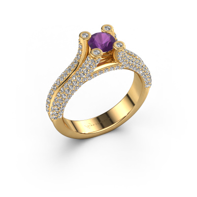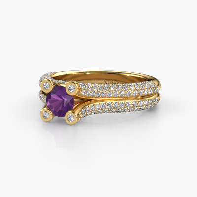 Dieser Verlobungsring aus 14 Karat Gold mit 5 mm Amethyst heißt Stefanie 2. Liebt deine Freundin exklusiven Schmuck? Oder möchten Sie ihr zeigen, dass sie den besten Schmuck verdient? Dieser Gold Ring ist pure Handwerkskunst - Liebe und Leidenschaft kombiniert mit den neuesten Techniken, die in perfekter Harmonie zusammentreffen. Es erfordert ein scharfes Auge, Geduld und eine geschickte Hand, um diesen Ring in Perfektion zu formen. Genau der richtige Job für unsere erfahrenen Juweliere! Die Amethysten-Fassung verleiht diesem Gold gespaltene Bänder Ring eine extra glänzende Erscheinung. Passen Sie den Stil des Rings nach Ihren Wünschen und mit einer großen Auswahl an Edelmetallen und Edelsteinen an, die Sie selbst auswählen können. So kreieren Sie einen einzigartigen Ring für die exklusivste Frau Ihres Lebens! Jedes Schmuckstück wird von unseren Meister-Goldschmieden in unserem eigenen Studio für Sie gefertigt.Nach Erhalt Ihrer Bestellung beginnen unsere Goldschmiede mit Leidenschaft den kreativen Prozess und fertigen Ihren Verlobungsring in unserem eigenen Studio. Da wir keine großen Lager haben, werden diese Kosten nicht an Sie weitergegeben. Unsere Preisgestaltung ist der Beweis dafür! Wir bieten Schmuck zum niedrigsten Preis, garantiert.Verschiedene Arten von neuen Ringen werden täglich von unserem Team angefertigt. Vielleicht haben Sie irgendwo einen Pavé Solitär Verlobungsring gefunden. Einen, den Sie Ihrem Liebsten schenken möchten. Bitte zögern Sie nicht, unseren Schmuckdesignern Ihre Gedanken und Ihr Design zu zeigen. Wir würden gerne Ihr Design in einen einzigartige Verlobungsring verwandeln. Sie können die Entwicklungen Ihres Ringdesigns verfolgen, da wir sehr detaillierte 3D-Zeichnungen verwenden. Darüber hinaus können Sie einen Dummy des Designs bestellen. Ein Dummy ist ein Kunststoffring, der nach Ihrem Ringdesign gestaltet werden kann. Sie können ihn anprobieren und prüfen, ob der Verlobungsring Ihren Vorstellungen entspricht. Wir senden Ihnen gerne ein unverbindliches Angebot zu einem fairen Preis/Leistungsverhältnis. Das Angebot wird Sie angesichts der Qualität des Rings und der Edelsteine verblüffen.Um es einfacher zu machen, bieten wir eine kostenlose 30-tägige Rücksendung.