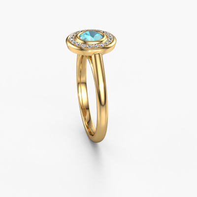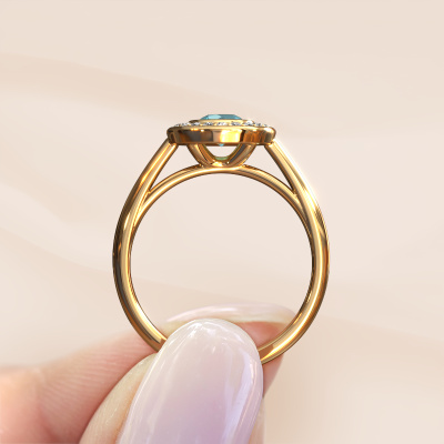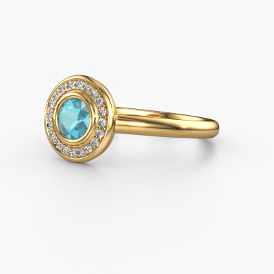 Der oben gezeigte Verlobungsring wird Noud 1 RND genannt. Es ist ein Halo Ring, da er einen zentralen Edelstein und ein Band mit Pavé-Fassung hat. Der 14 Karat Gold ring ist mit einem 4.7 mm rund Blau Topas-Mittelstein besetzt und um ihn herum eine Pavé-Fassung mit Diamanten. Was diesen traditionell, Gold Halo Ring besonders macht, sind die kleineren Steine, die den zentralen Stein umschließen. Dieser wunderschöne Verlobungsring wird als Halo Ring bezeichnet, da die kleineren Edelsteine dem zentralen Stein einen Lichthof geben. Damit die kleineren Steine den Mittelstein verstärken, müssen sie so platziert werden, dass keine Lichteinflüsse auftreten. Und hier kommen unsere erfahrenen Goldschmiede ins Spiel. Jeder einzelne Stein wird sorgfältig von Hand in den Ring gesetzt. Während der Herstellung wird der Lichteinfall ständig überprüft. So können wir sicherstellen, dass der spezielle Lichtkranz noch sichtbar ist. Am Ende erhalten Sie einen einzigartigen Verlobungsring mit einem Blaue Topas Ihrer Wahl in der Mitte. Sie können sich die Wirkung eines solchen Ringes vorstellen, wenn Sie ihn an ihrem besonderen Tag für sie zum Leuchten bringen. Durch die Kombination modernster Technik mit uralter Handwerkskunst können wir alle Verlobungsringe in unserem eigenen Studio anfertigen. Jedes Schmuckstück wird auf Anfrage gefertigt. Das ist vorteilhaft, weil wir Ihnen dadurch einen Preis anbieten können, den Sie nirgendwo anders finden.Haben Sie einen bestimmten Ring im Sinn? Eines, dass Sie irgendwo gesehen haben. Bitte zögern Sie nicht, uns zu sagen, was Sie wollen und wir werden Ihr Design in einen Einzigartigen Verlobungsring verwandeln. Sie können die Entwicklungen Ihres Ringdesigns verfolgen, da wir 3D-Zeichnungen verwenden. Das gibt Ihnen eine realistische Vorschau Ihres Designs. Wir senden Ihnen gerne ein unverbindliches Angebot zu einem fairen Preis/Leistungsverhältnis. Es wird Sie erstaunen.Um es einfacher zu machen, bieten wir eine kostenlose 30-tägige Rücksendung.