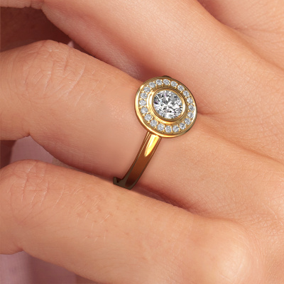 Der oben gezeigte Verlobungsring wird Noud 1 RND genannt. Es ist ein Halo Ring, da er einen zentralen Edelstein und ein Band mit Pavé-Fassung hat. Der 14 Karat Gold ring ist mit einem 0.40 crt rund Lab-grown Diamant-Mittelstein besetzt und um ihn herum eine Pavé-Fassung mit Diamanten. Was diesen traditionell, Gold Halo Ring besonders macht, sind die kleineren Steine, die den zentralen Stein umschließen. Dieser wunderschöne Verlobungsring wird als Halo Ring bezeichnet, da die kleineren Edelsteine dem zentralen Stein einen Lichthof geben. Damit die kleineren Steine den Mittelstein verstärken, müssen sie so platziert werden, dass keine Lichteinflüsse auftreten. Und hier kommen unsere erfahrenen Goldschmiede ins Spiel. Jeder einzelne Stein wird sorgfältig von Hand in den Ring gesetzt. Während der Herstellung wird der Lichteinfall ständig überprüft. So können wir sicherstellen, dass der spezielle Lichtkranz noch sichtbar ist. Am Ende erhalten Sie einen einzigartigen Verlobungsring mit einem Lab grown Diamant Ihrer Wahl in der Mitte. Sie können sich die Wirkung eines solchen Ringes vorstellen, wenn Sie ihn an ihrem besonderen Tag für sie zum Leuchten bringen. Durch die Kombination modernster Technik mit uralter Handwerkskunst können wir alle Verlobungsringe in unserem eigenen Studio anfertigen. Jedes Schmuckstück wird auf Anfrage gefertigt. Das ist vorteilhaft, weil wir Ihnen dadurch einen Preis anbieten können, den Sie nirgendwo anders finden.Haben Sie einen bestimmten Ring im Sinn? Eines, dass Sie irgendwo gesehen haben. Bitte zögern Sie nicht, uns zu sagen, was Sie wollen und wir werden Ihr Design in einen Einzigartigen Verlobungsring verwandeln. Sie können die Entwicklungen Ihres Ringdesigns verfolgen, da wir 3D-Zeichnungen verwenden. Das gibt Ihnen eine realistische Vorschau Ihres Designs. Wir senden Ihnen gerne ein unverbindliches Angebot zu einem fairen Preis/Leistungsverhältnis. Es wird Sie erstaunen.Um es einfacher zu machen, bieten wir eine kostenlose 30-tägige Rücksendung.