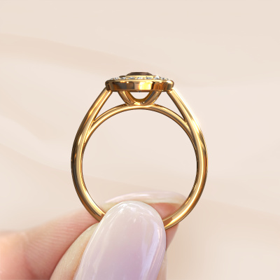 Der oben gezeigte Verlobungsring wird Noud 1 RND genannt. Es ist ein Halo Ring, da er einen zentralen Edelstein und ein Band mit Pavé-Fassung hat. Der 14 Karat Gold ring ist mit einem 4.7 mm rund Rauchquarz-Mittelstein besetzt und um ihn herum eine Pavé-Fassung mit Diamanten. Was diesen traditionell, Gold Halo Ring besonders macht, sind die kleineren Steine, die den zentralen Stein umschließen. Dieser wunderschöne Verlobungsring wird als Halo Ring bezeichnet, da die kleineren Edelsteine dem zentralen Stein einen Lichthof geben. Damit die kleineren Steine den Mittelstein verstärken, müssen sie so platziert werden, dass keine Lichteinflüsse auftreten. Und hier kommen unsere erfahrenen Goldschmiede ins Spiel. Jeder einzelne Stein wird sorgfältig von Hand in den Ring gesetzt. Während der Herstellung wird der Lichteinfall ständig überprüft. So können wir sicherstellen, dass der spezielle Lichtkranz noch sichtbar ist. Am Ende erhalten Sie einen einzigartigen Verlobungsring mit einem Rauchquarz Ihrer Wahl in der Mitte. Sie können sich die Wirkung eines solchen Ringes vorstellen, wenn Sie ihn an ihrem besonderen Tag für sie zum Leuchten bringen. Durch die Kombination modernster Technik mit uralter Handwerkskunst können wir alle Verlobungsringe in unserem eigenen Studio anfertigen. Jedes Schmuckstück wird auf Anfrage gefertigt. Das ist vorteilhaft, weil wir Ihnen dadurch einen Preis anbieten können, den Sie nirgendwo anders finden.Haben Sie einen bestimmten Ring im Sinn? Eines, dass Sie irgendwo gesehen haben. Bitte zögern Sie nicht, uns zu sagen, was Sie wollen und wir werden Ihr Design in einen Einzigartigen Verlobungsring verwandeln. Sie können die Entwicklungen Ihres Ringdesigns verfolgen, da wir 3D-Zeichnungen verwenden. Das gibt Ihnen eine realistische Vorschau Ihres Designs. Wir senden Ihnen gerne ein unverbindliches Angebot zu einem fairen Preis/Leistungsverhältnis. Es wird Sie erstaunen.Um es einfacher zu machen, bieten wir eine kostenlose 30-tägige Rücksendung.