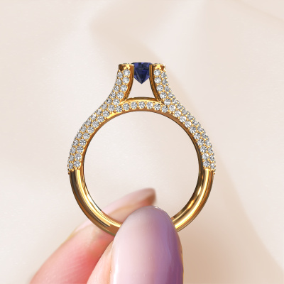 Dieser Verlobungsring aus 14 Karat Gold mit 5 mm Saphir heißt Stefanie 2. Liebt deine Freundin exklusiven Schmuck? Oder möchten Sie ihr zeigen, dass sie den besten Schmuck verdient? Dieser Gold Ring ist pure Handwerkskunst - Liebe und Leidenschaft kombiniert mit den neuesten Techniken, die in perfekter Harmonie zusammentreffen. Es erfordert ein scharfes Auge, Geduld und eine geschickte Hand, um diesen Ring in Perfektion zu formen. Genau der richtige Job für unsere erfahrenen Juweliere! Die Saphir-Fassung verleiht diesem Gold gespaltene Bänder Ring eine extra glänzende Erscheinung. Passen Sie den Stil des Rings nach Ihren Wünschen und mit einer großen Auswahl an Edelmetallen und Edelsteinen an, die Sie selbst auswählen können. So kreieren Sie einen einzigartigen Ring für die exklusivste Frau Ihres Lebens! Jedes Schmuckstück wird von unseren Meister-Goldschmieden in unserem eigenen Studio für Sie gefertigt.Nach Erhalt Ihrer Bestellung beginnen unsere Goldschmiede mit Leidenschaft den kreativen Prozess und fertigen Ihren Verlobungsring in unserem eigenen Studio. Da wir keine großen Lager haben, werden diese Kosten nicht an Sie weitergegeben. Unsere Preisgestaltung ist der Beweis dafür! Wir bieten Schmuck zum niedrigsten Preis, garantiert.Verschiedene Arten von neuen Ringen werden täglich von unserem Team angefertigt. Vielleicht haben Sie irgendwo einen Pavé Solitär Verlobungsring gefunden. Einen, den Sie Ihrem Liebsten schenken möchten. Bitte zögern Sie nicht, unseren Schmuckdesignern Ihre Gedanken und Ihr Design zu zeigen. Wir würden gerne Ihr Design in einen einzigartige Verlobungsring verwandeln. Sie können die Entwicklungen Ihres Ringdesigns verfolgen, da wir sehr detaillierte 3D-Zeichnungen verwenden. Darüber hinaus können Sie einen Dummy des Designs bestellen. Ein Dummy ist ein Kunststoffring, der nach Ihrem Ringdesign gestaltet werden kann. Sie können ihn anprobieren und prüfen, ob der Verlobungsring Ihren Vorstellungen entspricht. Wir senden Ihnen gerne ein unverbindliches Angebot zu einem fairen Preis/Leistungsverhältnis. Das Angebot wird Sie angesichts der Qualität des Rings und der Edelsteine verblüffen.Um es einfacher zu machen, bieten wir eine kostenlose 30-tägige Rücksendung.