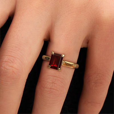 Dieser Verlobungsring aus 14 Karat Gold mit 9x7 mm Granat heißt Valorie eme 1. Liebt deine Freundin exklusiven Schmuck? Oder möchten Sie ihr zeigen, dass sie den besten Schmuck verdient? Dieser Gold Ring ist pure Handwerkskunst - Liebe und Leidenschaft kombiniert mit den neuesten Techniken, die in perfekter Harmonie zusammentreffen. Es erfordert ein scharfes Auge, Geduld und eine geschickte Hand, um diesen Ring in Perfektion zu formen. Genau der richtige Job für unsere erfahrenen Juweliere! Die Granat-Fassung verleiht diesem Gold raffinierte Ring eine extra glänzende Erscheinung. Passen Sie den Stil des Rings nach Ihren Wünschen und mit einer großen Auswahl an Edelmetallen und Edelsteinen an, die Sie selbst auswählen können. So kreieren Sie einen einzigartigen Ring für die exklusivste Frau Ihres Lebens! Jedes Schmuckstück wird nur für Sie persönlich hergestellt, mit Liebe zum Detail und Design.Mit unserer modernen Technik können wir Schmuckstücke von höchster Qualität mit größter Sorgfalt für Sie entwerfen und anpassen. Unsere Verlobungsringe sind immer um 30 Prozent günstiger als bei anderen Juwelieren. Wir fertigen Verlobungsringe auf Bestellung, also müssen wir keine großen Lager unterhalten. Wenn Sie ein bestimmtes Budget haben, beraten wir Sie gerne entsprechend.Verschiedene Arten von neuen Ringen werden täglich von unserem Team angefertigt. Vielleicht haben Sie irgendwo einen Solitär Verlobungsring gefunden. Einen, den Sie Ihrem Liebsten schenken möchten. Bitte zögern Sie nicht, unseren Schmuckdesignern Ihre Gedanken und Ihr Design zu zeigen. Wir würden gerne Ihr Design in einen exklusive Verlobungsring verwandeln. Sie können die Entwicklungen Ihres Ringdesigns verfolgen, da wir sehr detaillierte 3D-Zeichnungen verwenden. Darüber hinaus können Sie einen Dummy des Designs bestellen. Ein Dummy ist ein Kunststoffring, der nach Ihrem Ringdesign gestaltet werden kann. Sie können ihn anprobieren und prüfen, ob der Verlobungsring Ihren Vorstellungen entspricht. Wir senden Ihnen gerne ein unverbindliches Angebot zu einem fairen Preis/Leistungsverhältnis. Das Angebot wird Sie angesichts der Qualität des Rings und der Edelsteine verblüffen.Um es einfacher zu machen, bieten wir eine kostenlose 30-tägige Rücksendung.
