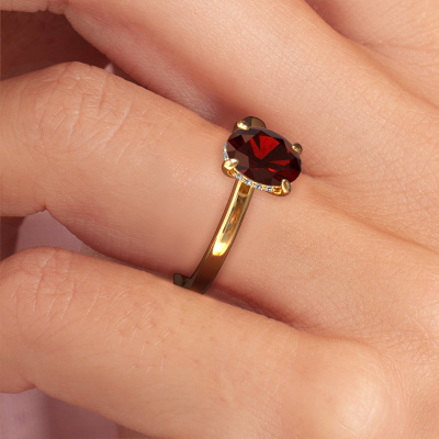 Dieser Verlobungsring aus 14 Karat Gold heißt Simone OVL 2. Suchen Sie nach einem einzigartigen Gold Verlobungsring mit einem trendigen Aussehen? Dann ist dieser Ring mit Granat das Richtige für Sie. Einfach nach Ihren Wünschen anpassen. Dieser moderne Verlobungsring ist mit exquisiten Granat besetzt. Er wurde sorgfältig ausgewählt, weil Ihr graziöse Verlobungsring nur mit dem schönsten Edelstein gekrönt werden darf. Unser erfahrener Juwelier kreiert Ihren Ring in unserem eigenen Studio, wo der Granat mit großer Sorgfalt eingefasst wird. Der Ring wird dann bearbeitet und poliert, um ihm einen zusätzlichen Glanz zu verleihen. Der perfekte Ring für Ihre bessere Hälfte!Da wir unsere eigenen Ringe entwerfen und liefern, können wir Ihnen einen Verlobungsring zu einem Preis anbieten, den Sie nirgendwo anders finden. Ein Ring wird auf Bestellung angefertigt, wodurch kein überschüssiges Material anfällt. So können wir Ihnen ein gutes Angebot zum besten Preis machen. Wir verstehen, dass es sich riskant anfühlt, Ihren Verlobungsring online zu kaufen. Jedoch helfen wir Ihnen gerne beim Designprozess unter Berücksichtigung Ihres Budgets.Haben Sie einen bestimmten Ring im Sinn? Eines, dass Sie irgendwo gesehen haben. Bitte zögern Sie nicht, uns zu sagen, was Sie wollen und wir werden Ihr Design in einen Einzigartigen Verlobungsring verwandeln. Sie können die Entwicklungen Ihres Ringdesigns verfolgen, da wir 3D-Zeichnungen verwenden. Das gibt Ihnen eine realistische Vorschau Ihres Designs. Wir senden Ihnen gerne ein unverbindliches Angebot zu einem fairen Preis/Leistungsverhältnis. Es wird Sie erstaunen.Um es einfacher zu machen, bieten wir eine kostenlose 30-tägige Rücksendung.