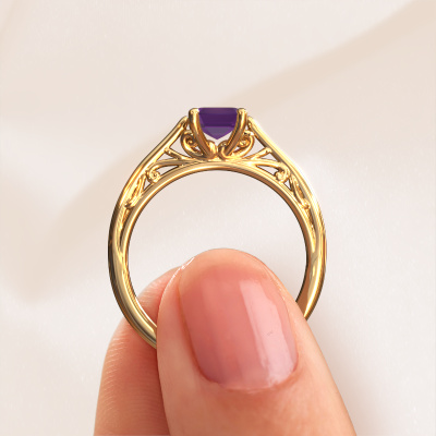 Dieser Verlobungsring aus 14 Karat Gold heißt Shannon eme und hat einen Amethyst Edelstein. Ein außergewöhnlicher, Gold Vintage Ring. Einer, der die Liebe Ihres Lebens mit Sicherheit wie ein Amethyst erstrahlen lässt! Das hoffen wir zu erreichen. Dieser Fantasie Verlobungsring ist mit exquisiten Amethysten besetzt. Welchen Edelstein Sie aus unserer Auswahl haben möchten, liegt ganz bei Ihnen. Der Edelstein wird mit großer Sorgfalt ausgewählt. Denn wir glauben, dass Ihr Verlobungsring nur mit dem schönsten Edelstein gekrönt sein darf. Sehen Sie das auch so? Unser erfahrener Juwelier entwirft Ihren Ring in unserem eigenen Studio, wo der Amethyst mit großer Präzision eingefasst wird. Der Ring wird dann bearbeitet und poliert, bis er perfekt ist. Nichts als das Beste für die Liebe Ihres Lebens! Jedes Schmuckstück ist einzigartig in jeder Hinsicht! Einfach nach Ihren Wünschen anzupassen.Haben Sie ein bestimmtes Budget? Sie können uns gerne kontaktieren, damit wir Ihre Optionen besprechen können. Wir bieten unsere Verlobungsringe zum garantiert besten Preis, denn wir fertigen sie auf Bestellung. Solche Preise finden Sie nirgendwo anders!Unsere Designer und Goldschmiede arbeiten jeden Tag zusammen und versuchen, neue Schmuckstücke zu kreieren. Vielleicht haben Sie irgendwo einen schönen, Fantasie Verlobungsring gefunden, nach dem Ihr einzigartiger Ring gestaltet werden kann. Setzen Sie sich mit uns in Verbindung. Wir machen Ihnen ein Angebot, basierend auf einem fairen Preis/Leistungsverhältnis, das Sie begeistern wird.Um es einfacher zu machen, bieten wir eine kostenlose 30-tägige Rücksendung.