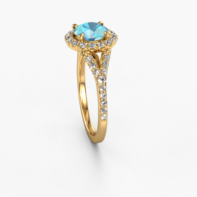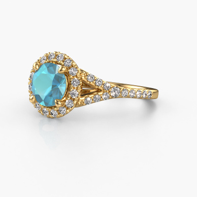 Der oben gezeigte Gold Verlobungsring wird Kimber RND genannt. Es ist ein Pavé Solitär Ring, da er einen zentralen Edelstein und ein Band mit Pavé-Fassung hat. Der klassische Pavé Solitär Verlobungsring ist in der Kombination 14 Karat Gold mit Gold und ist mit einem rund 7 mm Blau Topas-Mittelstein besetzt und das Band hat eine Pavé-Fassung mit Lab grown Diamant. Jedes Schmuckstück ist um Ihrem Finger Glanz zu verleihen. Jeder Ring wird von unseren Goldschmieden liebevoll von Hand gefertigt. Um den zentralen Stein noch mehr zu betonen, hat das Band eine Pavé-Fassung mit weiteren Blau Topas. Durch die offenen Krappen kann das Licht aus mehreren Winkeln auf den Blau Topas treffen und der Blau Topas-Ring funkelt noch mehr. Das obere Foto zeigt die leidenschaftlich handgefertigten Details des Rings. Die hohe Positionierung der Mittelstein ist ein echter Blickfang. Der perfekte Verlobungsring für das Kronjuwel Ihres Lebens!Nach Erhalt Ihrer Bestellung beginnen unsere Goldschmiede mit Leidenschaft den kreativen Prozess und fertigen Ihren Verlobungsring in unserem eigenen Studio. Da wir keine großen Lager haben, werden diese Kosten nicht an Sie weitergegeben. Unsere Preisgestaltung ist der Beweis dafür! Wir bieten Schmuck zum niedrigsten Preis, garantiert.Unser Team fügt unserer Online-Kollektion täglich neue Designs hinzu. Unsere Designer und Goldschmiede arbeiten zusammen, um das beste Design zu kreieren. Wir bemühen uns, eine vielfältige Kollektion von Schmuckstücken anzubieten. Vielleicht haben Sie ein bestimmtes Design im Sinn. Eines, dass Sie irgendwo gesehen haben. Gerne geben wir Ihnen eine kostenlose Beratung. Wir machen Ihnen ein Angebot, basierend auf einem fairen Preis/Leistungsverhältnis, das Sie verblüffen wird.Um es einfacher zu machen, bieten wir eine kostenlose 30-tägige Rücksendung.