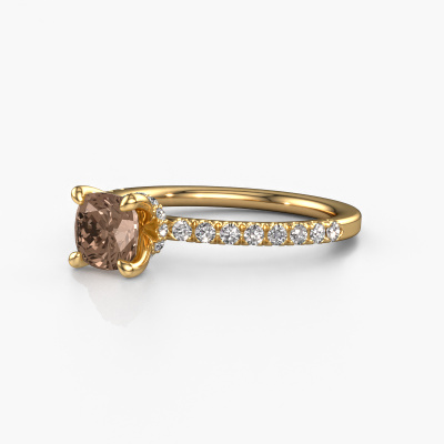 Der oben gezeigte Gold Verlobungsring wird Crystal CUS 4 genannt. Es ist ein Pavé Solitär Ring, da er einen zentralen Edelstein und ein Band mit Pavé-Fassung hat. Der schicke Pavé Solitär Verlobungsring ist in der Kombination 14 Karat Gold mit Gold und ist mit einem cussion 1.00 crt Braun Diamant-Mittelstein besetzt und das Band hat eine Pavé-Fassung mit Diamanten. Jedes Schmuckstück ist um Ihrem Finger Glanz zu verleihen. Jeder Ring wird von unseren Goldschmieden liebevoll von Hand gefertigt. Um den zentralen Stein noch mehr zu betonen, hat das Band eine Pavé-Fassung mit weiteren Braun Diamant. Durch die offenen Krappen kann das Licht aus mehreren Winkeln auf den Braun Diamant treffen und der Braun Diamant-Ring funkelt noch mehr. Das obere Foto zeigt die leidenschaftlich handgefertigten Details des Rings. Die hohe Positionierung der Mittelstein ist ein echter Blickfang. Der perfekte Verlobungsring für das Kronjuwel Ihres Lebens!Mit unserer modernen Technik können wir Schmuckstücke von höchster Qualität mit größter Sorgfalt für Sie entwerfen und anpassen. Unsere Verlobungsringe sind immer um 30 Prozent günstiger als bei anderen Juwelieren. Wir fertigen Verlobungsringe auf Bestellung, also müssen wir keine großen Lager unterhalten. Wenn Sie ein bestimmtes Budget haben, beraten wir Sie gerne entsprechend.Haben Sie einen bestimmten Ring im Sinn? Eines, dass Sie irgendwo gesehen haben. Bitte zögern Sie nicht, uns zu sagen, was Sie wollen und wir werden Ihr Design in einen Einzigartigen Verlobungsring verwandeln. Sie können die Entwicklungen Ihres Ringdesigns verfolgen, da wir 3D-Zeichnungen verwenden. Das gibt Ihnen eine realistische Vorschau Ihres Designs. Wir senden Ihnen gerne ein unverbindliches Angebot zu einem fairen Preis/Leistungsverhältnis. Es wird Sie erstaunen.Um es einfacher zu machen, bieten wir eine kostenlose 30-tägige Rücksendung.