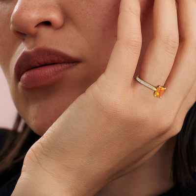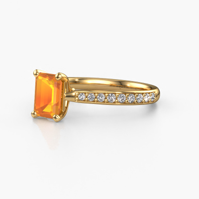 Der oben gezeigte Gold Verlobungsring wird Mignon eme 2 genannt. Es ist ein Pavé Solitär Ring, da er einen zentralen Edelstein und ein Band mit Pavé-Fassung hat. Der exklusive Pavé Solitär Verlobungsring ist in der Kombination 14 Karat Gold mit Gold und ist mit einem smaragd schliff 7x5 mm Citrin-Mittelstein besetzt und das Band hat eine Pavé-Fassung mit Lab grown Diamant. Jedes Schmuckstück wird nur für Sie persönlich hergestellt, mit Liebe zum Detail und Design. Um den zentralen Stein noch mehr zu betonen, hat das Band eine Pavé-Fassung mit weiteren Citrin. Durch die offenen Krappen kann das Licht aus mehreren Winkeln auf den Citrin treffen und der Citrin-Ring funkelt noch mehr. Das obere Foto zeigt die leidenschaftlich handgefertigten Details des Rings. Die hohe Positionierung der Mittelstein ist ein echter Blickfang. Der perfekte Verlobungsring für das Kronjuwel Ihres Lebens!Haben Sie ein bestimmtes Budget? Sie können uns gerne kontaktieren, damit wir Ihre Optionen besprechen können. Wir bieten unsere Verlobungsringe zum garantiert besten Preis, denn wir fertigen sie auf Bestellung. Solche Preise finden Sie nirgendwo anders!Haben Sie einen bestimmten Ring im Sinn? Eines, dass Sie irgendwo gesehen haben. Bitte zögern Sie nicht, uns zu sagen, was Sie wollen und wir werden Ihr Design in einen Einzigartigen Verlobungsring verwandeln. Sie können die Entwicklungen Ihres Ringdesigns verfolgen, da wir 3D-Zeichnungen verwenden. Das gibt Ihnen eine realistische Vorschau Ihres Designs. Wir senden Ihnen gerne ein unverbindliches Angebot zu einem fairen Preis/Leistungsverhältnis. Es wird Sie erstaunen.Um es einfacher zu machen, bieten wir eine kostenlose 30-tägige Rücksendung.