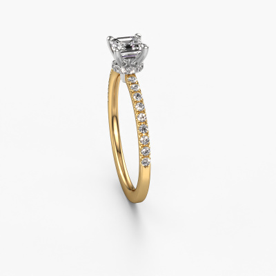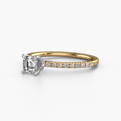 Der oben gezeigte Gold Verlobungsring wird Crystal ASSC 4 genannt. Es ist ein Pavé Solitär Ring, da er einen zentralen Edelstein und ein Band mit Pavé-Fassung hat. Der exklusive Pavé Solitär Verlobungsring ist in der Kombination 14 Karat Gold mit Weißgold und ist mit einem asscher 0.50 crt Diamant-Mittelstein besetzt und das Band hat eine Pavé-Fassung mit Diamanten. Jedes Schmuckstück wird hergestellt mit Leidenschaft und Liebe, von einem unserer Meister-Goldschmiede. Um den zentralen Stein noch mehr zu betonen, hat das Band eine Pavé-Fassung mit weiteren Diamant. Durch die offenen Krappen kann das Licht aus mehreren Winkeln auf den Diamant treffen und der Diamant-Ring funkelt noch mehr. Das obere Foto zeigt die leidenschaftlich handgefertigten Details des Rings. Die hohe Positionierung der Mittelstein ist ein echter Blickfang. Der perfekte Verlobungsring für das Kronjuwel Ihres Lebens!Durch die Kombination modernster Technik mit uralter Handwerkskunst können wir alle Verlobungsringe in unserem eigenen Studio anfertigen. Jedes Schmuckstück wird auf Anfrage gefertigt. Das ist vorteilhaft, weil wir Ihnen dadurch einen Preis anbieten können, den Sie nirgendwo anders finden.Unser Team fügt unserer Online-Kollektion täglich neue Designs hinzu. Unsere Designer und Goldschmiede arbeiten zusammen, um das beste Design zu kreieren. Wir bemühen uns, eine vielfältige Kollektion von Schmuckstücken anzubieten. Vielleicht haben Sie ein bestimmtes Design im Sinn. Eines, dass Sie irgendwo gesehen haben. Gerne geben wir Ihnen eine kostenlose Beratung. Wir machen Ihnen ein Angebot, basierend auf einem fairen Preis/Leistungsverhältnis, das Sie verblüffen wird.Um es einfacher zu machen, bieten wir eine kostenlose 30-tägige Rücksendung.