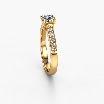 Der oben gezeigte Gold Verlobungsring wird Valorie RND 2 genannt. Es ist ein Pavé Solitär Ring, da er einen zentralen Edelstein und ein Band mit Pavé-Fassung hat. Der moderne Pavé Solitär Verlobungsring ist in der Kombination 14 Karat Gold mit Gold und ist mit einem rund 0.50 crt Diamant-Mittelstein besetzt und das Band hat eine Pavé-Fassung mit Lab grown Diamant. Jedes Schmuckstück wird nur für Sie persönlich hergestellt, mit Liebe zum Detail und Design. Um den zentralen Stein noch mehr zu betonen, hat das Band eine Pavé-Fassung mit weiteren Diamant. Durch die offenen Krappen kann das Licht aus mehreren Winkeln auf den Diamant treffen und der Diamant-Ring funkelt noch mehr. Das obere Foto zeigt die leidenschaftlich handgefertigten Details des Rings. Die hohe Positionierung der Mittelstein ist ein echter Blickfang. Der perfekte Verlobungsring für das Kronjuwel Ihres Lebens!Mit unserer modernen Technik können wir Schmuckstücke von höchster Qualität mit größter Sorgfalt für Sie entwerfen und anpassen. Unsere Verlobungsringe sind immer um 30 Prozent günstiger als bei anderen Juwelieren. Wir fertigen Verlobungsringe auf Bestellung, also müssen wir keine großen Lager unterhalten. Wenn Sie ein bestimmtes Budget haben, beraten wir Sie gerne entsprechend.Unsere Designer und Goldschmiede arbeiten jeden Tag zusammen und versuchen, neue Schmuckstücke zu kreieren. Vielleicht haben Sie irgendwo einen schönen, moderne Verlobungsring gefunden, nach dem Ihr einzigartiger Ring gestaltet werden kann. Setzen Sie sich mit uns in Verbindung. Wir machen Ihnen ein Angebot, basierend auf einem fairen Preis/Leistungsverhältnis, das Sie begeistern wird.Um es einfacher zu machen, bieten wir eine kostenlose 30-tägige Rücksendung.
