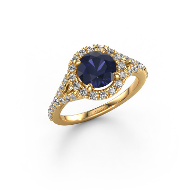 Der oben gezeigte Gold Verlobungsring wird Kimber RND genannt. Es ist ein Pavé Solitär Ring, da er einen zentralen Edelstein und ein Band mit Pavé-Fassung hat. Der klassische Pavé Solitär Verlobungsring ist in der Kombination 14 Karat Gold mit Gold und ist mit einem rund 7 mm Saphir-Mittelstein besetzt und das Band hat eine Pavé-Fassung mit Lab grown Diamant. Jedes Schmuckstück ist um Ihrem Finger Glanz zu verleihen. Jeder Ring wird von unseren Goldschmieden liebevoll von Hand gefertigt. Um den zentralen Stein noch mehr zu betonen, hat das Band eine Pavé-Fassung mit weiteren Saphir. Durch die offenen Krappen kann das Licht aus mehreren Winkeln auf den Saphir treffen und der Saphir-Ring funkelt noch mehr. Das obere Foto zeigt die leidenschaftlich handgefertigten Details des Rings. Die hohe Positionierung der Mittelstein ist ein echter Blickfang. Der perfekte Verlobungsring für das Kronjuwel Ihres Lebens!Nach Erhalt Ihrer Bestellung beginnen unsere Goldschmiede mit Leidenschaft den kreativen Prozess und fertigen Ihren Verlobungsring in unserem eigenen Studio. Da wir keine großen Lager haben, werden diese Kosten nicht an Sie weitergegeben. Unsere Preisgestaltung ist der Beweis dafür! Wir bieten Schmuck zum niedrigsten Preis, garantiert.Unser Team fügt unserer Online-Kollektion täglich neue Designs hinzu. Unsere Designer und Goldschmiede arbeiten zusammen, um das beste Design zu kreieren. Wir bemühen uns, eine vielfältige Kollektion von Schmuckstücken anzubieten. Vielleicht haben Sie ein bestimmtes Design im Sinn. Eines, dass Sie irgendwo gesehen haben. Gerne geben wir Ihnen eine kostenlose Beratung. Wir machen Ihnen ein Angebot, basierend auf einem fairen Preis/Leistungsverhältnis, das Sie verblüffen wird.Um es einfacher zu machen, bieten wir eine kostenlose 30-tägige Rücksendung.