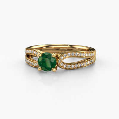 Der oben gezeigte Gold Verlobungsring wird Antonia rnd 2 genannt. Es ist ein Pavé Solitär Ring, da er einen zentralen Edelstein und ein Band mit Pavé-Fassung hat. Der traditionell Pavé Solitär Verlobungsring ist in der Kombination 14 Karat Gold mit Gold und ist mit einem rund 5 mm Smaragd-Mittelstein besetzt und das Band hat eine Pavé-Fassung mit Diamanten. Jedes Schmuckstück wird nur für Sie persönlich hergestellt, mit Liebe zum Detail und Design. Um den zentralen Stein noch mehr zu betonen, hat das Band eine Pavé-Fassung mit weiteren Smaragd. Durch die offenen Krappen kann das Licht aus mehreren Winkeln auf den Smaragd treffen und der Smaragd-Ring funkelt noch mehr. Das obere Foto zeigt die leidenschaftlich handgefertigten Details des Rings. Die hohe Positionierung der Mittelstein ist ein echter Blickfang. Der perfekte Verlobungsring für das Kronjuwel Ihres Lebens!Nachdem Sie Ihre Bestellung aufgegeben haben, beginnen unsere Goldschmiede mit dem kreativen Prozess der Herstellung Ihres Antonia rnd 2 Verlobungsring. Wir haben keine Lager. Das ist vorteilhaft, da diese Kosten nicht an Sie weitergegeben werden. Daher sind wir in der Lage, Schmuck zu außergewöhnlich niedrigen Preisen anzubieten.Haben Sie irgendwo einen bestimmten Verlobungsring gefunden, den Sie Ihrem Liebsten schenken möchten? Sie können uns gerne sagen, was Sie wollen und wir werden Ihr Design in einen Einzigartigen traditionell Verlobungsring verwandeln. Sie können die Entwicklungen Ihres Ringdesigns verfolgen, da wir 3D-Zeichnungen verwenden. Das gibt Ihnen eine realistische Vorschau, wie Ihr Design aussehen wird. Sie können auch einen Dummy vorbestellen. Ein Dummy ist ein Kunststoffring, der nach Ihrem Ringdesign gestaltet werden kann. Sie können ihn anprobieren und prüfen, ob seine Breite und Größe für Sie geeignet sind. Wir senden Ihnen gerne ein unverbindliches Angebot zu einem fairen Preis/Leistungsverhältnis. Sie werden in Anbetracht der Qualität des Rings und der Edelsteine überrascht sein.Um es einfacher zu machen, bieten wir eine kostenlose 30-tägige Rücksendung.