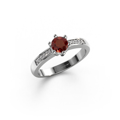 Der oben gezeigte Ring wird Luna 2 genannt. Es ist ein Pavé Solitär Ring, da er einen zentralen Edelstein und ein Band mit Pavé-Fassung hat. Dieser Platin ring ist mit einem 5 mm rund Granat-Mittelstein besetzt und das Band hat eine Pavé-Fassung mit Diamanten. Jedes Schmuckstück ist einzigartig in jeder Hinsicht! Einfach nach Ihren Wünschen anzupassen.Dieser klassische Platin Pavé Solitär Verlobungsring mit Pavé-Fassung hat einen exquisiten, rund Granat als Mittelstein. Um den zentralen Stein noch mehr zu betonen, hat das Band eine Pavé-Fassung mit weiteren Diamanten. Durch die offenen Krappen kann das Licht aus mehreren Winkeln auf den Granat treffen und der Granat-Ring funkelt noch mehr. Das obere Foto zeigt die leidenschaftlich handgefertigten Details des Rings. Die hohe Positionierung der Mittelstein ist ein echter Blickfang. Der perfekte Verlobungsring für das Kronjuwel Ihres Lebens!Da wir unsere eigenen Ringe entwerfen und liefern, können wir Ihnen einen Verlobungsring zu einem Preis anbieten, den Sie nirgendwo anders finden. Ein Ring wird auf Bestellung angefertigt, wodurch kein überschüssiges Material anfällt. So können wir Ihnen ein gutes Angebot zum besten Preis machen. Wir verstehen, dass es sich riskant anfühlt, Ihren Verlobungsring online zu kaufen. Jedoch helfen wir Ihnen gerne beim Designprozess unter Berücksichtigung Ihres Budgets.Unser Team fügt unserer Online-Kollektion täglich neue Designs hinzu. Unsere Designer und Goldschmiede arbeiten zusammen, um das beste Design zu kreieren. Wir bemühen uns, eine vielfältige Kollektion von Schmuckstücken anzubieten. Vielleicht haben Sie ein bestimmtes Design im Sinn. Eines, dass Sie irgendwo gesehen haben. Gerne geben wir Ihnen eine kostenlose Beratung. Wir machen Ihnen ein Angebot, basierend auf einem fairen Preis/Leistungsverhältnis, das Sie verblüffen wird.Um es einfacher zu machen, bieten wir eine kostenlose 30-tägige Rücksendung.