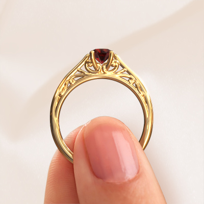 Dieser Verlobungsring aus 14 Karat Gold heißt Shannon rnd. Wie würden Sie den Stil der Liebe Ihres Lebens beschreiben? Hat sie einen einzigartigen Sinn für Stil? Diese umwerfende, ajour Gold Verlobungsring mit 5 mm Granat kann nach Ihren Wünschen angefertigt werden. Unsere Granat wurden sorgfältig ausgewählt. Denn wir denken, dass Ihr Verlobungsring nur mit dem schönsten Edelstein gekrönt werden darf. Sehen Sie das auch so? Jedes Schmuckstück wird hergestellt mit Leidenschaft und Liebe, von einem unserer Meister-Goldschmiede.Durch die Kombination modernster Technik mit uralter Handwerkskunst können wir alle Verlobungsringe in unserem eigenen Studio anfertigen. Jedes Schmuckstück wird auf Anfrage gefertigt. Das ist vorteilhaft, weil wir Ihnen dadurch einen Preis anbieten können, den Sie nirgendwo anders finden.Haben Sie einen bestimmten Ring im Sinn? Eines, dass Sie irgendwo gesehen haben. Bitte zögern Sie nicht, uns zu sagen, was Sie wollen und wir werden Ihr Design in einen Einzigartigen Verlobungsring verwandeln. Sie können die Entwicklungen Ihres Ringdesigns verfolgen, da wir 3D-Zeichnungen verwenden. Das gibt Ihnen eine realistische Vorschau Ihres Designs. Wir senden Ihnen gerne ein unverbindliches Angebot zu einem fairen Preis/Leistungsverhältnis. Es wird Sie erstaunen.Um es einfacher zu machen, bieten wir eine kostenlose 30-tägige Rücksendung.