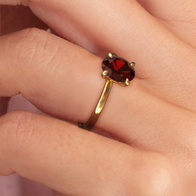 Der oben gezeigte Verlobungsring wird Crystal OVL 1 genannt. Wir nennen das einen Solitär-Ring, denn er hat einen einzelnen Edelstein. Es ist ein 14 Karat Gold ring, mit 8x6 mm oval Granat. Das Besondere an unserem Konfigurator ist dass Sie selbst einem Schmuckstück zusammenstellen können zu einem eigenen persönlichen Schmuckstück. Dieser Solitäre Verlobungsring ist gefertigt in der Edelmetall Kombination Gold mit Gold, aber Sie können also auch wählen aus anderen Farben. Jedes Schmuckstück ist um Ihrem Finger Glanz zu verleihen. Jeder Ring wird von unseren Goldschmieden liebevoll von Hand gefertigt. Der Solitär-Verlobungsring ist eine Sonderform des Verlobungsring. Seine offenen Krappen ermöglichen, dass Licht aus mehr Winkeln auf den Edelstein trifft. Dieser klassische Verlobungsring ist durch die hohe Positionierung des Edelsteins ein atemberaubender Blickfang. Wir schmücken diesen Solitär-Ring sorgfältig von Hand, damit Sie Ihren Anfrage mit einem einzigartigen Ring würdigen können. Die Liebe Ihres Lebens verdient nur das Beste. Da wir unsere eigenen Ringe entwerfen und liefern, können wir Ihnen einen Verlobungsring zu einem Preis anbieten, den Sie nirgendwo anders finden. Ein Ring wird auf Bestellung angefertigt, wodurch kein überschüssiges Material anfällt. So können wir Ihnen ein gutes Angebot zum besten Preis machen. Wir verstehen, dass es sich riskant anfühlt, Ihren Verlobungsring online zu kaufen. Jedoch helfen wir Ihnen gerne beim Designprozess unter Berücksichtigung Ihres Budgets.Unser Team fügt unserer Online-Kollektion täglich neue Designs hinzu. Unsere Designer und Goldschmiede arbeiten zusammen, um das beste Design zu kreieren. Wir bemühen uns, eine vielfältige Kollektion von Schmuckstücken anzubieten. Vielleicht haben Sie ein bestimmtes Design im Sinn. Eines, dass Sie irgendwo gesehen haben. Gerne geben wir Ihnen eine kostenlose Beratung. Wir machen Ihnen ein Angebot, basierend auf einem fairen Preis/Leistungsverhältnis, das Sie verblüffen wird.Um es einfacher zu machen, bieten wir eine kostenlose 30-tägige Rücksendung.