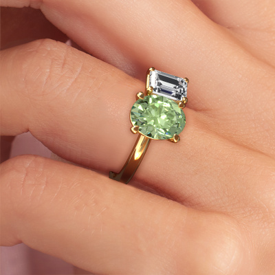 Dieser Verlobungsring aus 14 Karat Gold mit 9x7 mm grüner Labor-Diamant heißt Toi et Moi OVL-EME. Was macht Ihre Beziehung einzigartig? Was hat sie an sich, was Sie dazu bringt, auf die Knie zu fallen? Die einzigartige Verbindung zwischen Ihnen beiden wird durch einen ebenso einzigartigen Ring unterstrichen. Ein einzigartiger 2-stone Verlobungsring, der nur für sie gemacht wurde. Deshalb passt dieser Ring wie angegossen. Jedes einzelne Detail dieses charmant, Gold grüner Labor-Diamant Verlobungsring wird von unserem erfahrenen Goldschmieden in unserem eigenen Studio von Hand ausgesucht, bearbeitet und poliert. Das Endprodukt ist ein exquisiter Ring, einzigartig und bis zur Perfektion gebracht. Danach streben unsere erfahrenen Juweliere. Jedes Schmuckstück wird nur für Sie persönlich hergestellt, mit Liebe zum Detail und Design.Nachdem Sie Ihre Bestellung aufgegeben haben, beginnen unsere Goldschmiede mit dem kreativen Prozess der Herstellung Ihres Toi et Moi OVL-EME Verlobungsring. Wir haben keine Lager. Das ist vorteilhaft, da diese Kosten nicht an Sie weitergegeben werden. Daher sind wir in der Lage, Schmuck zu außergewöhnlich niedrigen Preisen anzubieten.Unser Team fügt unserer Online-Kollektion täglich neue Designs hinzu. Unsere Designer und Goldschmiede arbeiten zusammen, um das beste Design zu kreieren. Wir bemühen uns, eine vielfältige Kollektion von Schmuckstücken anzubieten. Vielleicht haben Sie ein bestimmtes Design im Sinn. Eines, dass Sie irgendwo gesehen haben. Gerne geben wir Ihnen eine kostenlose Beratung. Wir machen Ihnen ein Angebot, basierend auf einem fairen Preis/Leistungsverhältnis, das Sie verblüffen wird.Um es einfacher zu machen, bieten wir eine kostenlose 30-tägige Rücksendung.