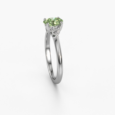 Dieser Verlobungsring aus 14 Karat Weißgold heißt Felipa OVL. Wie würden Sie den Stil der Liebe Ihres Lebens beschreiben? Hat sie einen einzigartigen Sinn für Stil? Diese umwerfende, zierliche Weißgold Verlobungsring mit 7x5 mm grüner Labor-Diamant kann nach Ihren Wünschen angefertigt werden. Unsere grüner Labor-Diamanten wurden sorgfältig ausgewählt. Denn wir denken, dass Ihr Verlobungsring nur mit dem schönsten Edelstein gekrönt werden darf. Sehen Sie das auch so? Jedes Schmuckstück wird von unseren Meister-Goldschmieden in unserem eigenen Studio für Sie gefertigt.Mit unserer modernen Technik können wir Schmuckstücke von höchster Qualität mit größter Sorgfalt für Sie entwerfen und anpassen. Unsere Verlobungsringe sind immer um 30 Prozent günstiger als bei anderen Juwelieren. Wir fertigen Verlobungsringe auf Bestellung, also müssen wir keine großen Lager unterhalten. Wenn Sie ein bestimmtes Budget haben, beraten wir Sie gerne entsprechend.Haben Sie irgendwo einen bestimmten Verlobungsring gefunden, den Sie Ihrem Liebsten schenken möchten? Sie können uns gerne sagen, was Sie wollen und wir werden Ihr Design in einen Einzigartigen traditionell Verlobungsring verwandeln. Sie können die Entwicklungen Ihres Ringdesigns verfolgen, da wir 3D-Zeichnungen verwenden. Das gibt Ihnen eine realistische Vorschau, wie Ihr Design aussehen wird. Sie können auch einen Dummy vorbestellen. Ein Dummy ist ein Kunststoffring, der nach Ihrem Ringdesign gestaltet werden kann. Sie können ihn anprobieren und prüfen, ob seine Breite und Größe für Sie geeignet sind. Wir senden Ihnen gerne ein unverbindliches Angebot zu einem fairen Preis/Leistungsverhältnis. Sie werden in Anbetracht der Qualität des Rings und der Edelsteine überrascht sein.Um es einfacher zu machen, bieten wir eine kostenlose 30-tägige Rücksendung.