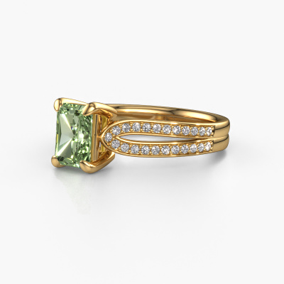 Der oben gezeigte Gold Verlobungsring wird Antonia rad 2 genannt. Es ist ein Pavé Solitär Ring, da er einen zentralen Edelstein und ein Band mit Pavé-Fassung hat. Der schicke Pavé Solitär Verlobungsring ist in der Kombination 14 Karat Gold mit Gold und ist mit einem radiant 7x5 mm grüner Labor-Diamant-Mittelstein besetzt und das Band hat eine Pavé-Fassung mit Diamanten. Jedes Schmuckstück wird von unseren Meister-Goldschmieden in unserem eigenen Studio für Sie gefertigt. Um den zentralen Stein noch mehr zu betonen, hat das Band eine Pavé-Fassung mit weiteren grüner Labor-Diamant. Durch die offenen Krappen kann das Licht aus mehreren Winkeln auf den grüner Labor-Diamant treffen und der grüner Labor-Diamant-Ring funkelt noch mehr. Das obere Foto zeigt die leidenschaftlich handgefertigten Details des Rings. Die hohe Positionierung der Mittelstein ist ein echter Blickfang. Der perfekte Verlobungsring für das Kronjuwel Ihres Lebens!Da wir unsere eigenen Ringe entwerfen und liefern, können wir Ihnen einen Verlobungsring zu einem Preis anbieten, den Sie nirgendwo anders finden. Ein Ring wird auf Bestellung angefertigt, wodurch kein überschüssiges Material anfällt. So können wir Ihnen ein gutes Angebot zum besten Preis machen. Wir verstehen, dass es sich riskant anfühlt, Ihren Verlobungsring online zu kaufen. Jedoch helfen wir Ihnen gerne beim Designprozess unter Berücksichtigung Ihres Budgets.Unser Team fügt unserer Online-Kollektion täglich neue Designs hinzu. Unsere Designer und Goldschmiede arbeiten zusammen, um das beste Design zu kreieren. Wir bemühen uns, eine vielfältige Kollektion von Schmuckstücken anzubieten. Vielleicht haben Sie ein bestimmtes Design im Sinn. Eines, dass Sie irgendwo gesehen haben. Gerne geben wir Ihnen eine kostenlose Beratung. Wir machen Ihnen ein Angebot, basierend auf einem fairen Preis/Leistungsverhältnis, das Sie verblüffen wird.Um es einfacher zu machen, bieten wir eine kostenlose 30-tägige Rücksendung.