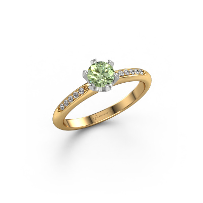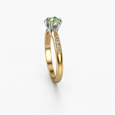 Der oben gezeigte Ring wird Tiffy 2 genannt. Es ist ein Pavé Solitär Ring, da er einen zentralen Edelstein und ein Band mit Pavé-Fassung hat. Dieser 14 Karat Gold ring ist mit einem 4.7 mm rund grüner Labor-Diamant-Mittelstein besetzt und das Band hat eine Pavé-Fassung mit Diamanten. Jedes Schmuckstück ist um Ihrem Finger Glanz zu verleihen. Jeder Ring wird von unseren Goldschmieden liebevoll von Hand gefertigt.Dieser traditionell Gold Pavé Solitär Verlobungsring mit Pavé-Fassung hat einen exquisiten, rund grüner Labor-Diamant als Mittelstein. Um den zentralen Stein noch mehr zu betonen, hat das Band eine Pavé-Fassung mit weiteren Diamanten. Durch die offenen Krappen kann das Licht aus mehreren Winkeln auf den grüner Labor-Diamant treffen und der grüner Labor-Diamant-Ring funkelt noch mehr. Das obere Foto zeigt die leidenschaftlich handgefertigten Details des Rings. Die hohe Positionierung der Mittelstein ist ein echter Blickfang. Der perfekte Verlobungsring für das Kronjuwel Ihres Lebens!
