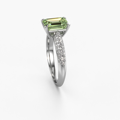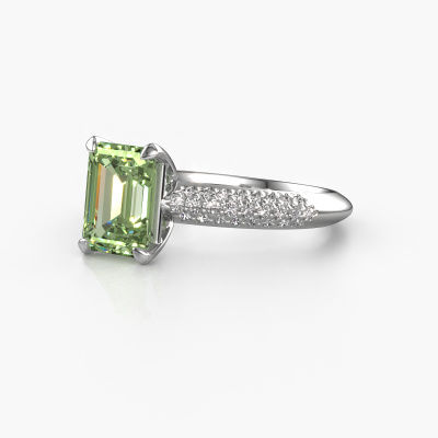 Der oben gezeigte Platin Verlobungsring wird Morane EME genannt. Es ist ein Pavé Solitär Ring, da er einen zentralen Edelstein und ein Band mit Pavé-Fassung hat. Der einzigartige Pavé Solitär Verlobungsring ist in der Kombination Platin mit Platin und ist mit einem smaragd schliff 8x6 mm grüner Labor-Diamant-Mittelstein besetzt und das Band hat eine Pavé-Fassung mit Lab grown Diamant. Jedes Schmuckstück wird von unseren Meister-Goldschmieden in unserem eigenen Studio für Sie gefertigt. Um den zentralen Stein noch mehr zu betonen, hat das Band eine Pavé-Fassung mit weiteren grüner Labor-Diamant. Durch die offenen Krappen kann das Licht aus mehreren Winkeln auf den grüner Labor-Diamant treffen und der grüner Labor-Diamant-Ring funkelt noch mehr. Das obere Foto zeigt die leidenschaftlich handgefertigten Details des Rings. Die hohe Positionierung der Mittelstein ist ein echter Blickfang. Der perfekte Verlobungsring für das Kronjuwel Ihres Lebens!Nach Erhalt Ihrer Bestellung beginnen unsere Goldschmiede mit Leidenschaft den kreativen Prozess und fertigen Ihren Verlobungsring in unserem eigenen Studio. Da wir keine großen Lager haben, werden diese Kosten nicht an Sie weitergegeben. Unsere Preisgestaltung ist der Beweis dafür! Wir bieten Schmuck zum niedrigsten Preis, garantiert.Unser Team fügt unserer Online-Kollektion täglich neue Designs hinzu. Unsere Designer und Goldschmiede arbeiten zusammen, um das beste Design zu kreieren. Wir bemühen uns, eine vielfältige Kollektion von Schmuckstücken anzubieten. Vielleicht haben Sie ein bestimmtes Design im Sinn. Eines, dass Sie irgendwo gesehen haben. Gerne geben wir Ihnen eine kostenlose Beratung. Wir machen Ihnen ein Angebot, basierend auf einem fairen Preis/Leistungsverhältnis, das Sie verblüffen wird.Um es einfacher zu machen, bieten wir eine kostenlose 30-tägige Rücksendung.