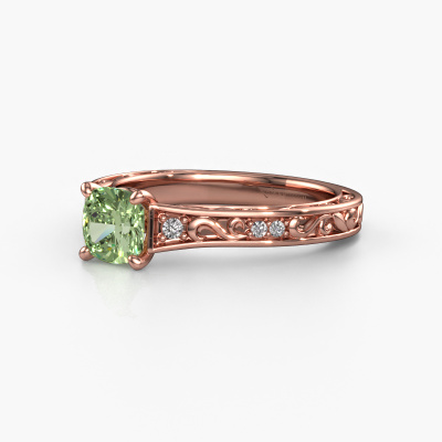 Der oben gezeigte Ring wird Mallory cus genannt. Es ist ein Pavé Solitär Ring, da er einen zentralen Edelstein und ein Band mit Pavé-Fassung hat. Dieser 14 Karat Roségold ring ist mit einem 5.5 mm cussion grüner Labor-Diamant-Mittelstein besetzt und das Band hat eine Pavé-Fassung mit Diamanten. Jedes Schmuckstück wird von unseren Meister-Goldschmieden in unserem eigenen Studio für Sie gefertigt.Dieser Keltische Roségold Pavé Solitär Verlobungsring mit Pavé-Fassung hat einen exquisiten, cussion grüner Labor-Diamant als Mittelstein. Um den zentralen Stein noch mehr zu betonen, hat das Band eine Pavé-Fassung mit weiteren Diamanten. Durch die offenen Krappen kann das Licht aus mehreren Winkeln auf den grüner Labor-Diamant treffen und der grüner Labor-Diamant-Ring funkelt noch mehr. Das obere Foto zeigt die leidenschaftlich handgefertigten Details des Rings. Die hohe Positionierung der Mittelstein ist ein echter Blickfang. Der perfekte Verlobungsring für das Kronjuwel Ihres Lebens!Mit unserer modernen Technik können wir Schmuckstücke von höchster Qualität mit größter Sorgfalt für Sie entwerfen und anpassen. Unsere Verlobungsringe sind immer um 30 Prozent günstiger als bei anderen Juwelieren. Wir fertigen Verlobungsringe auf Bestellung, also müssen wir keine großen Lager unterhalten. Wenn Sie ein bestimmtes Budget haben, beraten wir Sie gerne entsprechend.Verschiedene Arten von neuen Ringen werden täglich von unserem Team angefertigt. Vielleicht haben Sie irgendwo einen Pavé Solitär Verlobungsring gefunden. Einen, den Sie Ihrem Liebsten schenken möchten. Bitte zögern Sie nicht, unseren Schmuckdesignern Ihre Gedanken und Ihr Design zu zeigen. Wir würden gerne Ihr Design in einen Keltische Verlobungsring verwandeln. Sie können die Entwicklungen Ihres Ringdesigns verfolgen, da wir sehr detaillierte 3D-Zeichnungen verwenden. Darüber hinaus können Sie einen Dummy des Designs bestellen. Ein Dummy ist ein Kunststoffring, der nach Ihrem Ringdesign gestaltet werden kann. Sie können ihn anprobieren und prüfen, ob der Verlobungsring Ihren Vorstellungen entspricht. Wir senden Ihnen gerne ein unverbindliches Angebot zu einem fairen Preis/Leistungsverhältnis. Das Angebot wird Sie angesichts der Qualität des Rings und der Edelsteine verblüffen.Um es einfacher zu machen, bieten wir eine kostenlose 30-tägige Rücksendung.