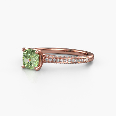 Der oben gezeigte Ring wird Elenore cus genannt. Es ist ein Pavé Solitär Ring, da er einen zentralen Edelstein und ein Band mit Pavé-Fassung hat. Dieser 14 Karat Roségold ring ist mit einem 5.5 mm cussion grüner Labor-Diamant-Mittelstein besetzt und das Band hat eine Pavé-Fassung mit Lab grown Diamant. Jedes Schmuckstück wird hergestellt von einem Team leidenschaftlicher Goldschmiede und Schmuckdesigner. Das wird Ihr Kronjuwel unbedingt zu einem Blickfang machen.Dieser moderne Roségold Pavé Solitär Verlobungsring mit Pavé-Fassung hat einen exquisiten, cussion grüner Labor-Diamant als Mittelstein. Um den zentralen Stein noch mehr zu betonen, hat das Band eine Pavé-Fassung mit weiteren Lab grown Diamant. Durch die offenen Krappen kann das Licht aus mehreren Winkeln auf den grüner Labor-Diamant treffen und der grüner Labor-Diamant-Ring funkelt noch mehr. Das obere Foto zeigt die leidenschaftlich handgefertigten Details des Rings. Die hohe Positionierung der Mittelstein ist ein echter Blickfang. Der perfekte Verlobungsring für das Kronjuwel Ihres Lebens!Nachdem Sie Ihre Bestellung aufgegeben haben, beginnen unsere Goldschmiede mit dem kreativen Prozess der Herstellung Ihres Elenore cus Verlobungsring. Wir haben keine Lager. Das ist vorteilhaft, da diese Kosten nicht an Sie weitergegeben werden. Daher sind wir in der Lage, Schmuck zu außergewöhnlich niedrigen Preisen anzubieten.Haben Sie irgendwo einen bestimmten Verlobungsring gefunden, den Sie Ihrem Liebsten schenken möchten? Sie können uns gerne sagen, was Sie wollen und wir werden Ihr Design in einen Einzigartigen moderne Verlobungsring verwandeln. Sie können die Entwicklungen Ihres Ringdesigns verfolgen, da wir 3D-Zeichnungen verwenden. Das gibt Ihnen eine realistische Vorschau, wie Ihr Design aussehen wird. Sie können auch einen Dummy vorbestellen. Ein Dummy ist ein Kunststoffring, der nach Ihrem Ringdesign gestaltet werden kann. Sie können ihn anprobieren und prüfen, ob seine Breite und Größe für Sie geeignet sind. Wir senden Ihnen gerne ein unverbindliches Angebot zu einem fairen Preis/Leistungsverhältnis. Sie werden in Anbetracht der Qualität des Rings und der Edelsteine überrascht sein.Um es einfacher zu machen, bieten wir eine kostenlose 30-tägige Rücksendung.