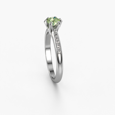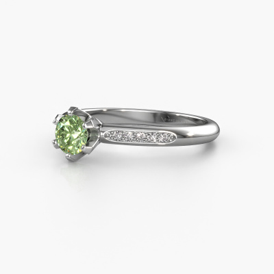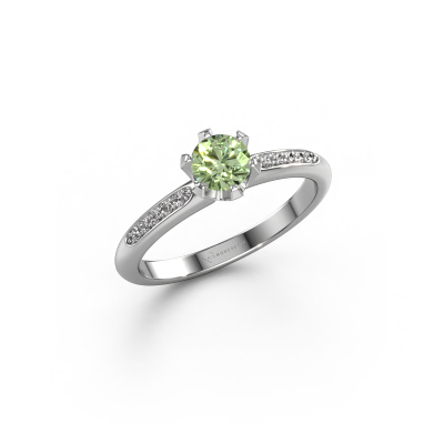 Der oben gezeigte Ring wird Tiffy 2 genannt. Es ist ein Pavé Solitär Ring, da er einen zentralen Edelstein und ein Band mit Pavé-Fassung hat. Dieser 14 Karat Weißgold ring ist mit einem 4.7 mm rund grüner Labor-Diamant-Mittelstein besetzt und das Band hat eine Pavé-Fassung mit Diamanten. Jedes Schmuckstück ist um Ihrem Finger Glanz zu verleihen. Jeder Ring wird von unseren Goldschmieden liebevoll von Hand gefertigt.Dieser traditionell Weißgold Pavé Solitär Verlobungsring mit Pavé-Fassung hat einen exquisiten, rund grüner Labor-Diamant als Mittelstein. Um den zentralen Stein noch mehr zu betonen, hat das Band eine Pavé-Fassung mit weiteren Diamanten. Durch die offenen Krappen kann das Licht aus mehreren Winkeln auf den grüner Labor-Diamant treffen und der grüner Labor-Diamant-Ring funkelt noch mehr. Das obere Foto zeigt die leidenschaftlich handgefertigten Details des Rings. Die hohe Positionierung der Mittelstein ist ein echter Blickfang. Der perfekte Verlobungsring für das Kronjuwel Ihres Lebens!